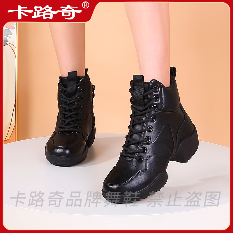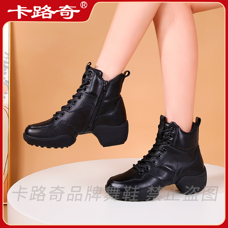 卡路奇广场舞鞋秋冬新款女士跳舞靴子软底高帮跟现代爵士舞蹈鞋女
