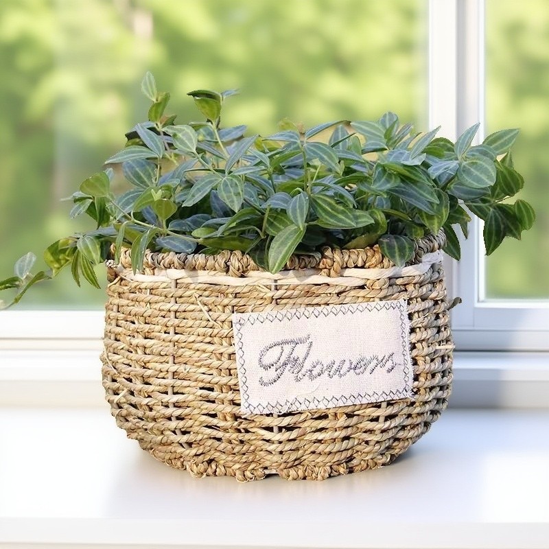 两件包邮多肉简约现代椭圆绿萝花盆空调草编提篮蝴蝶兰花盆花篮