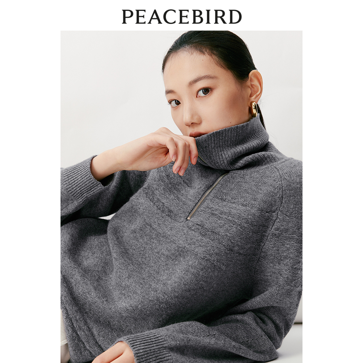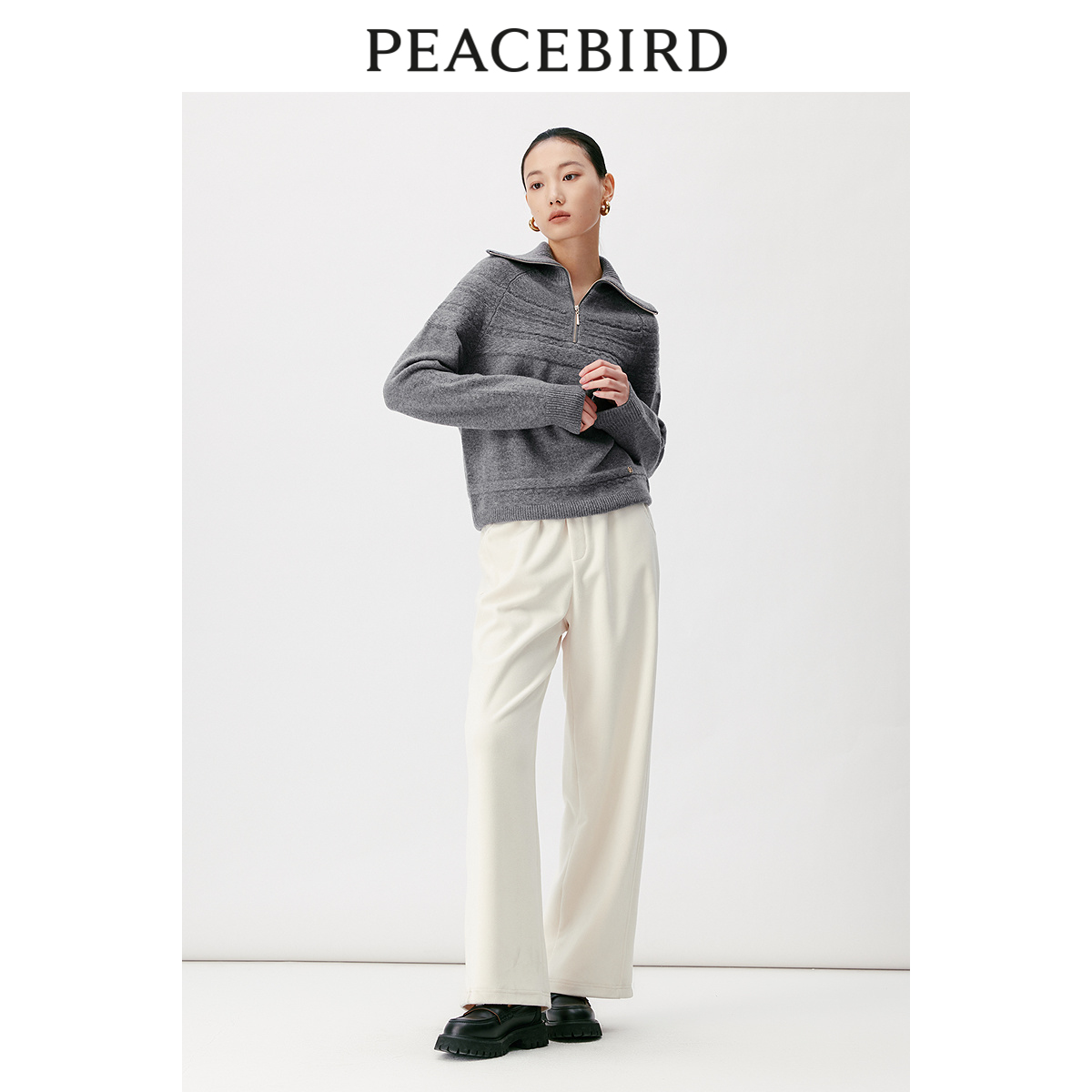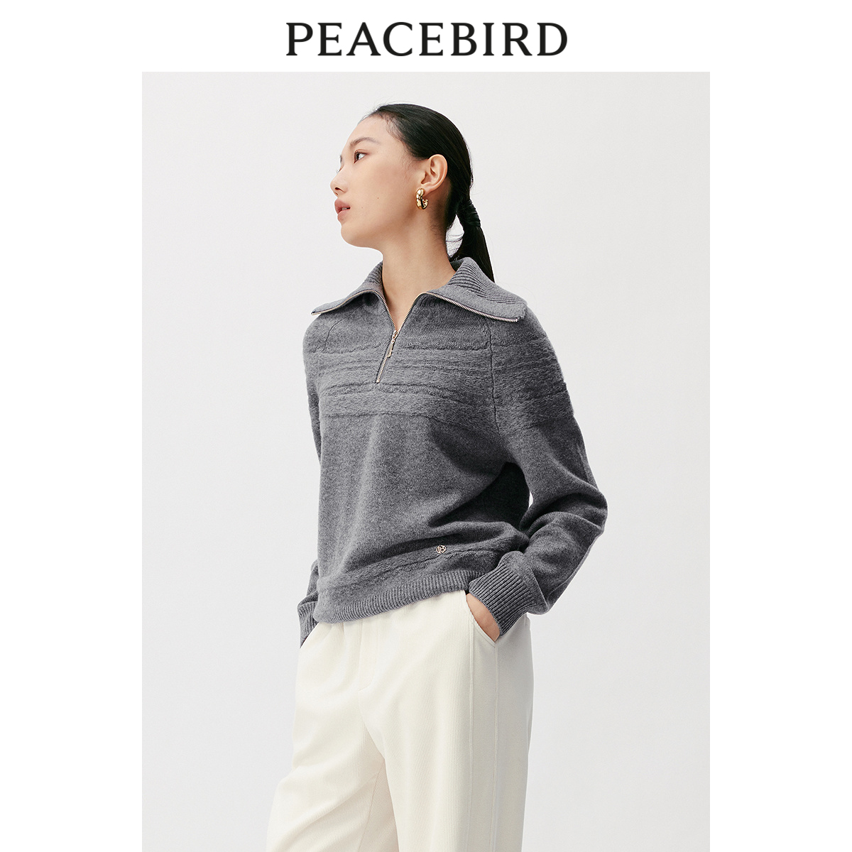 【商场同款】太平鸟2023年冬季新款翻领拉链套头衫A1EBD4415