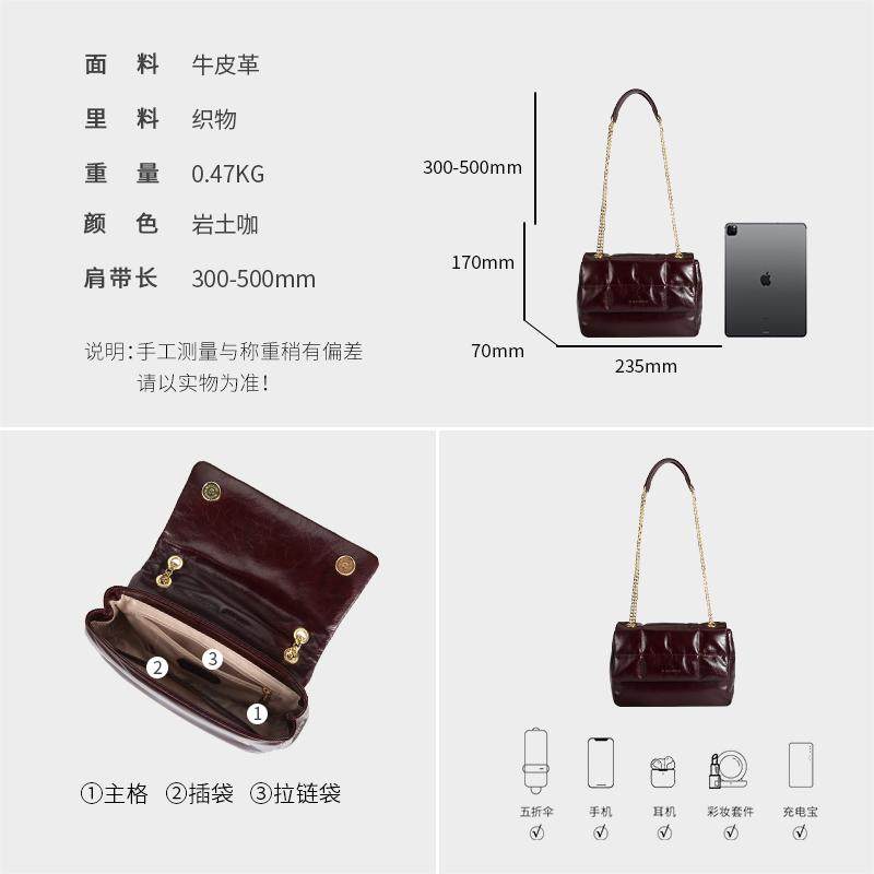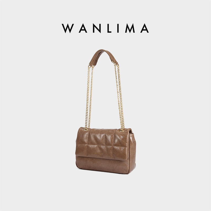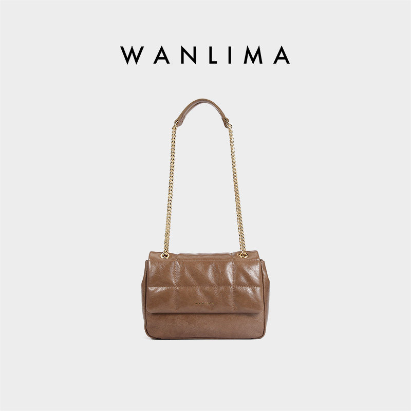 万里马复古油蜡豆腐包菱格链条极简风腋下包通勤百搭单肩法式斜挎