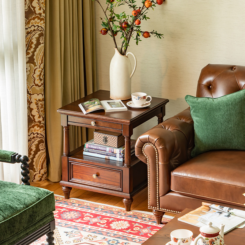 和年美家美式复古全实木角几小茶几简美客厅沙发边几侧边柜边角桌