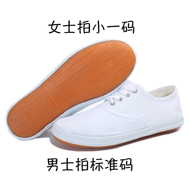 环球小白鞋男女系带工作帆布鞋体操鞋武术鞋中小学生运动会白鞋子