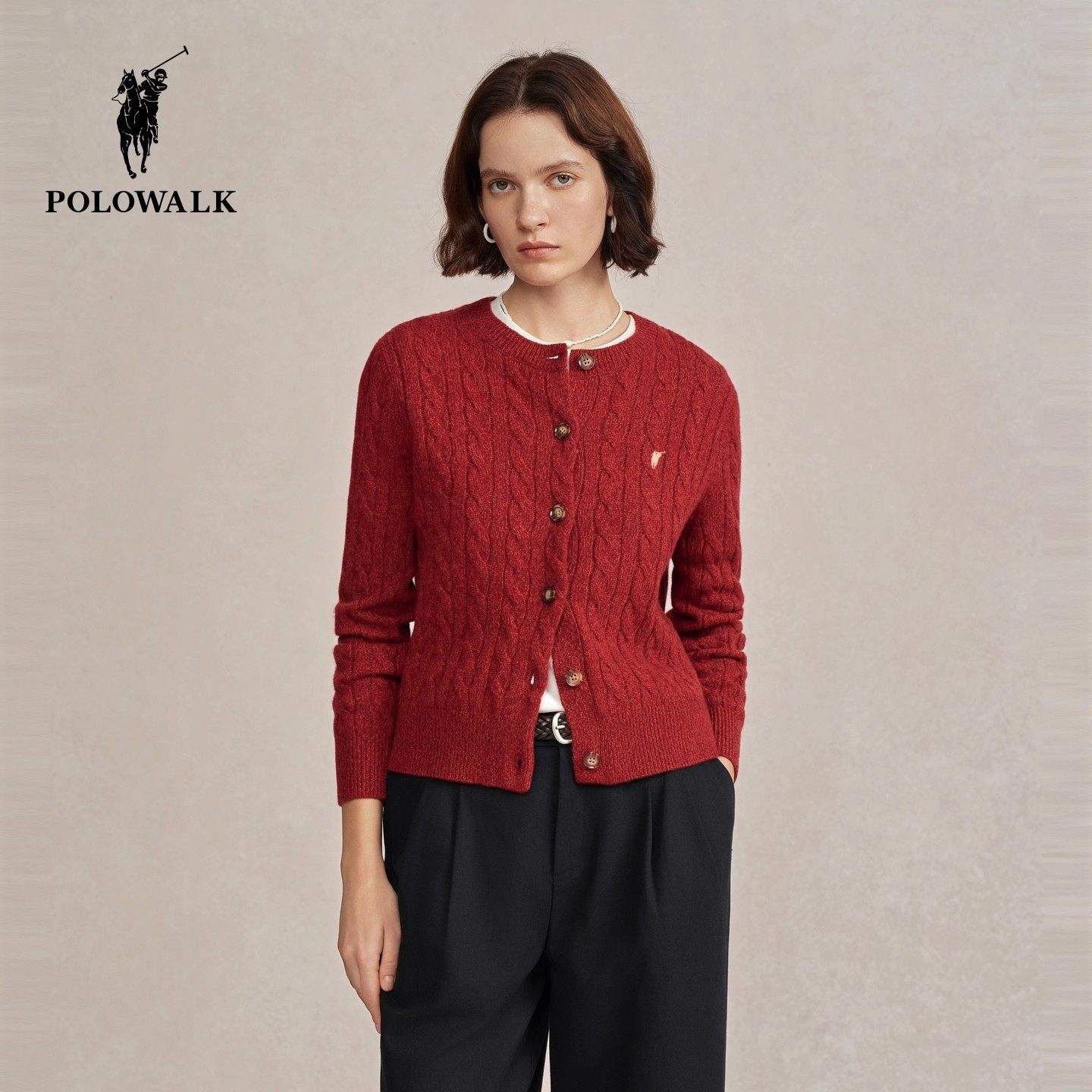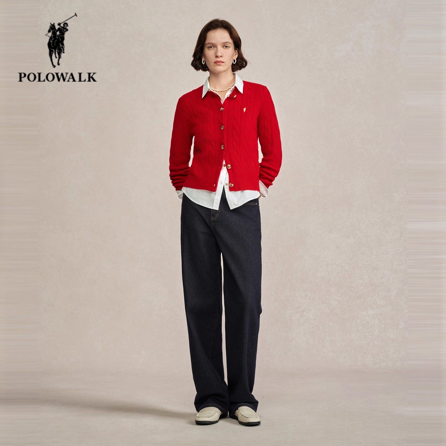 POLOWALK红色毛衣开衫女冬季新款新年本命年保罗女装圣诞针织外套