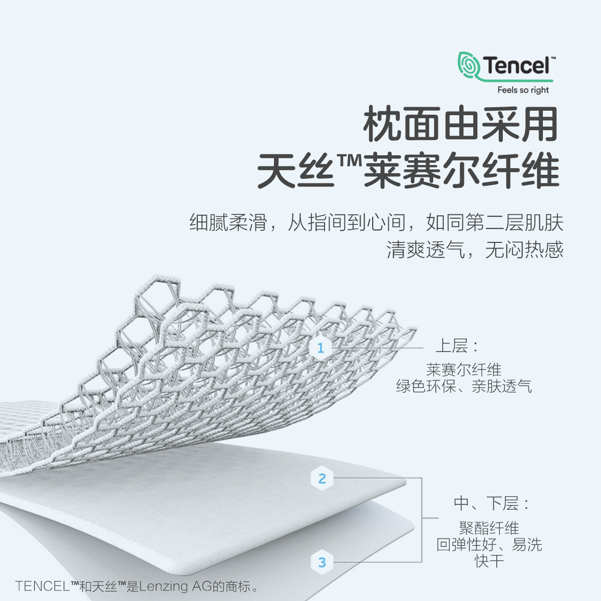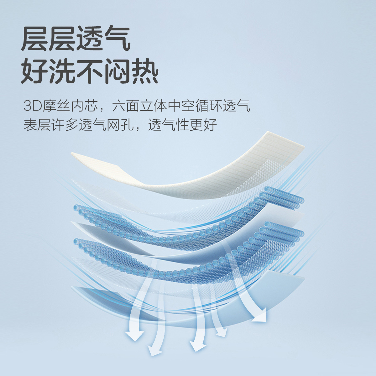 水星家纺畅呼吸分层透气儿童枕头可水洗成长枕呵护颈枕芯学生床品