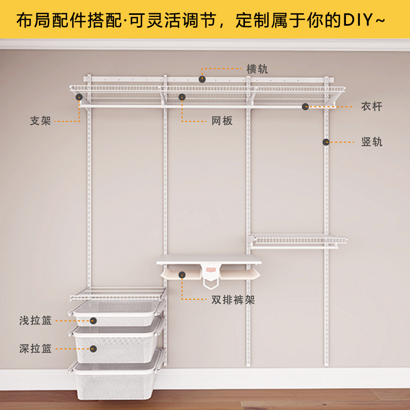一恒金属衣柜定制钢架步入式衣帽间开放式衣帽架卧室简约家用衣橱