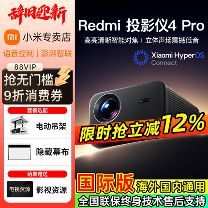 2026新款小米红米Redmi投影仪4Pro家用超高清1080P智能手机投屏家庭影院海外全球版客厅卧室宿舍投墙投影机