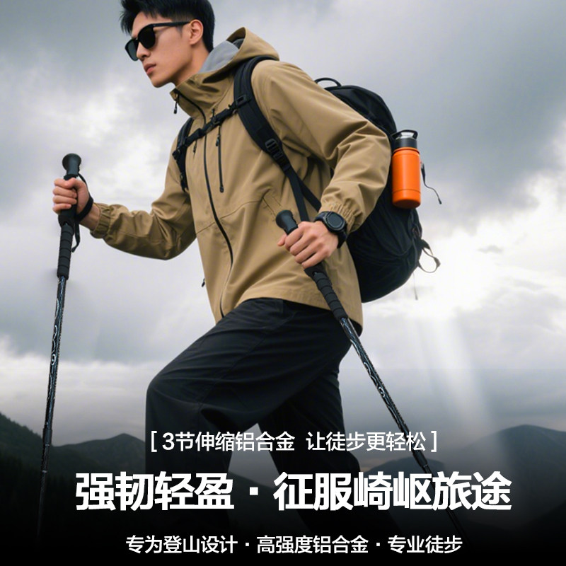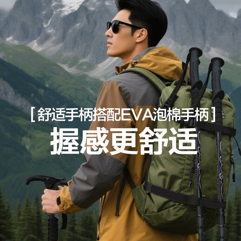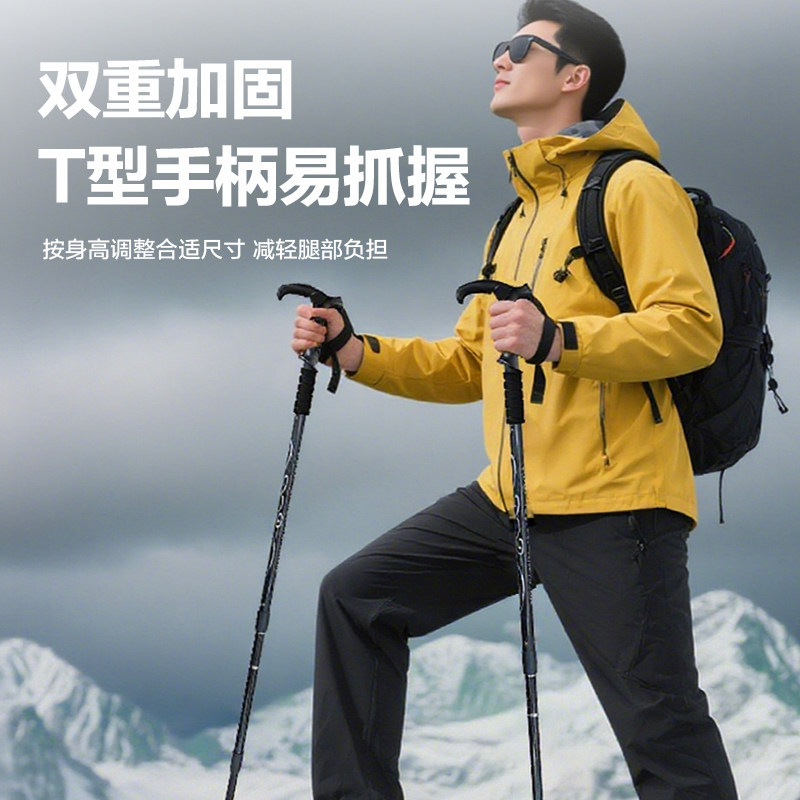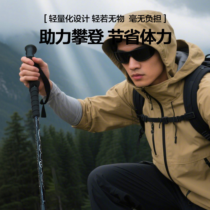悠景登山杖爬山手杖碳素三节超轻伸缩杖户外徒步装备钨钢登山手杖