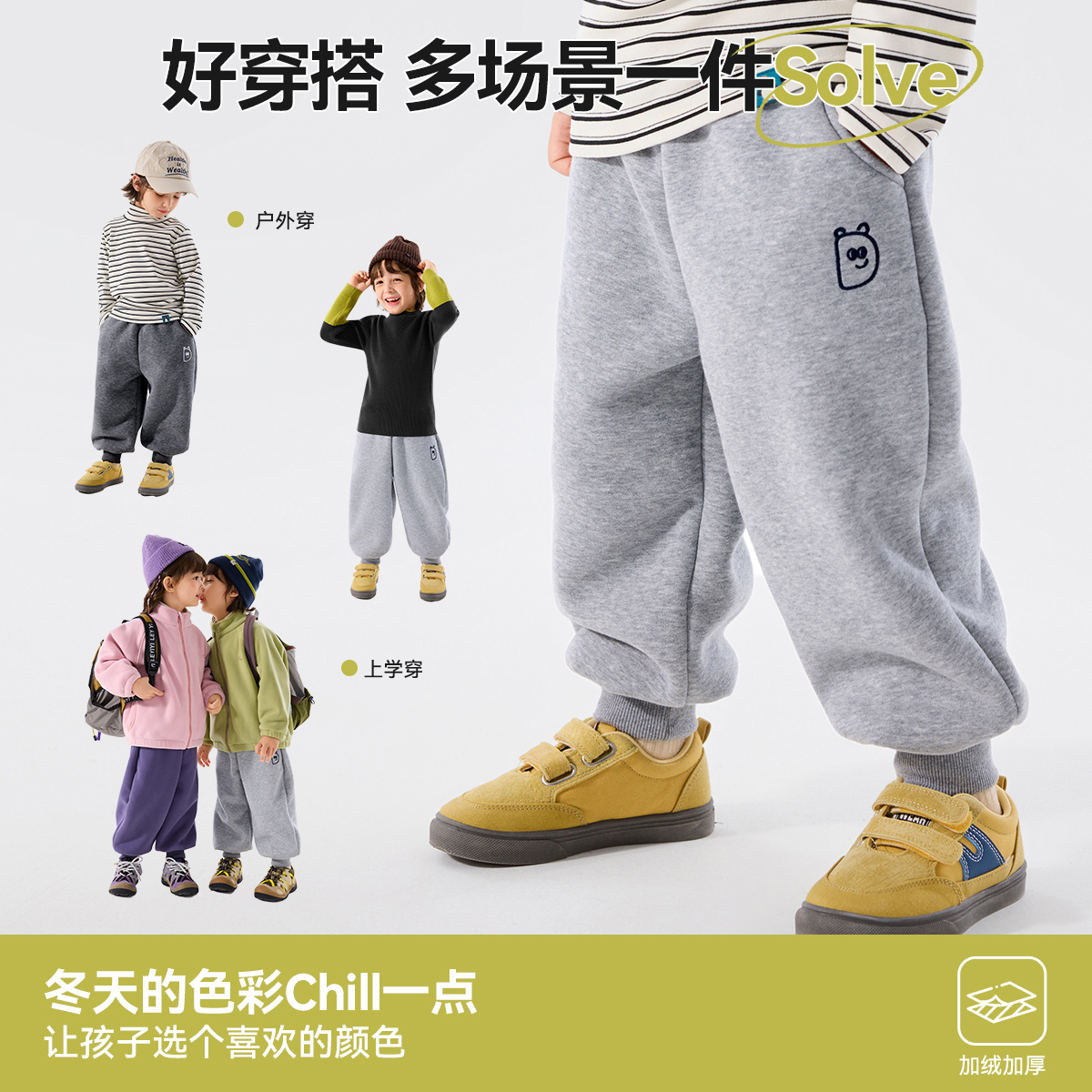 嘟嘟家儿童裤子冬季新款加绒男童长裤女童休闲裤衣服宝宝童装卫裤