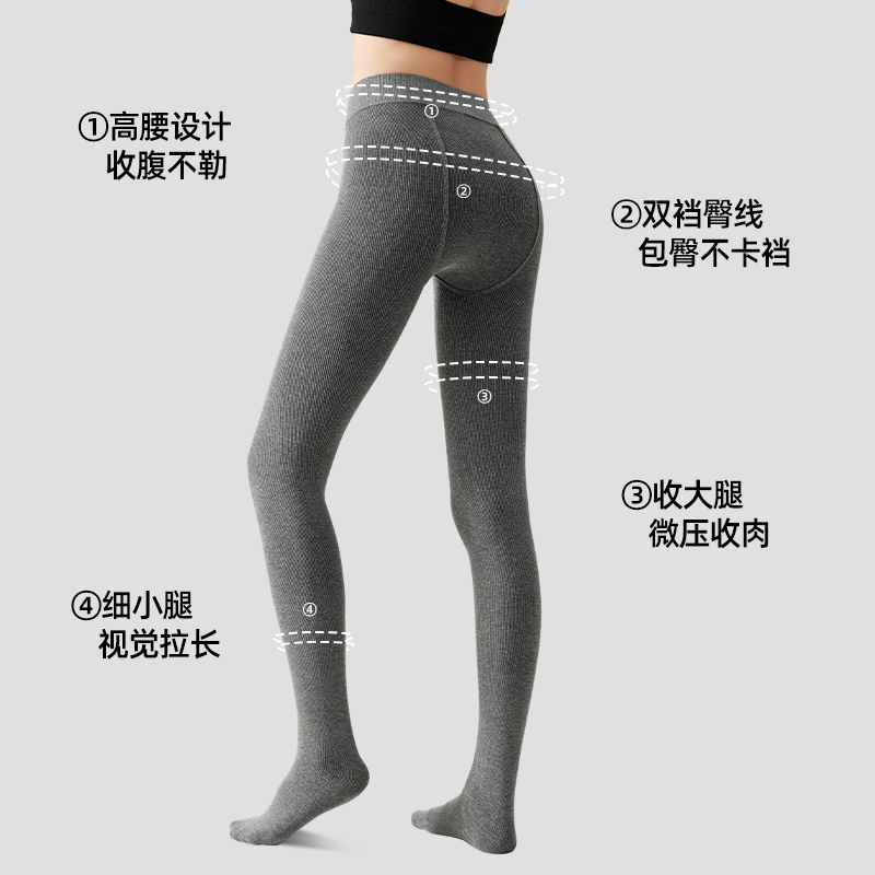 竖条纹灰色打底裤女2025新款秋冬加绒加厚保暖外穿连裤袜弹力显瘦