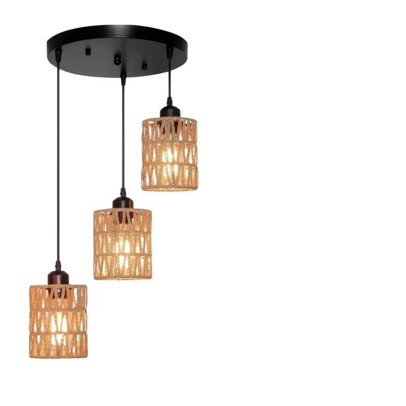 美式仿麻绳手工编织吊灯民宿中式餐厅酒店客栈吧台卧室三头吸顶灯
