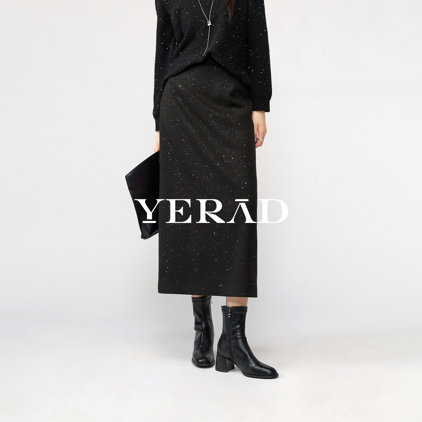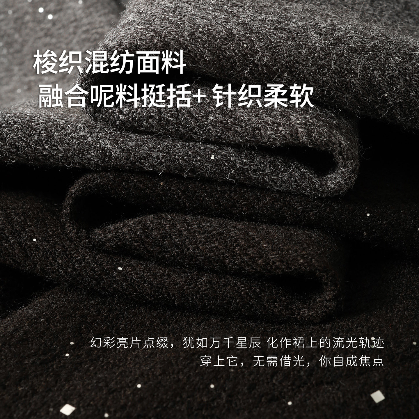 娅丽达高级感亮片仿毛呢半身裙女