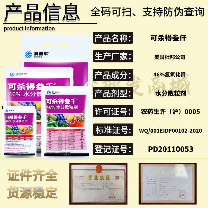 美国杜邦可杀得叁千 可杀得三千46%氢氧化铜柑橘溃疡病农药杀菌剂