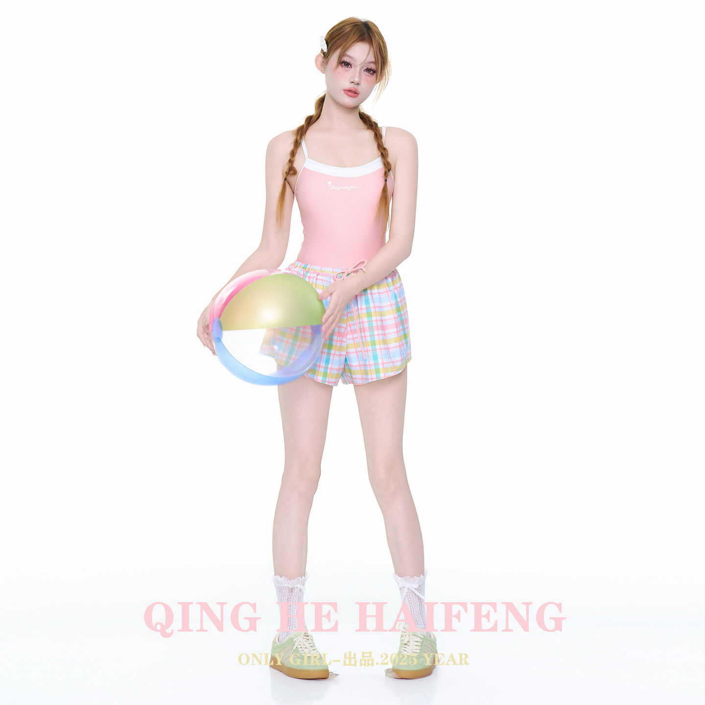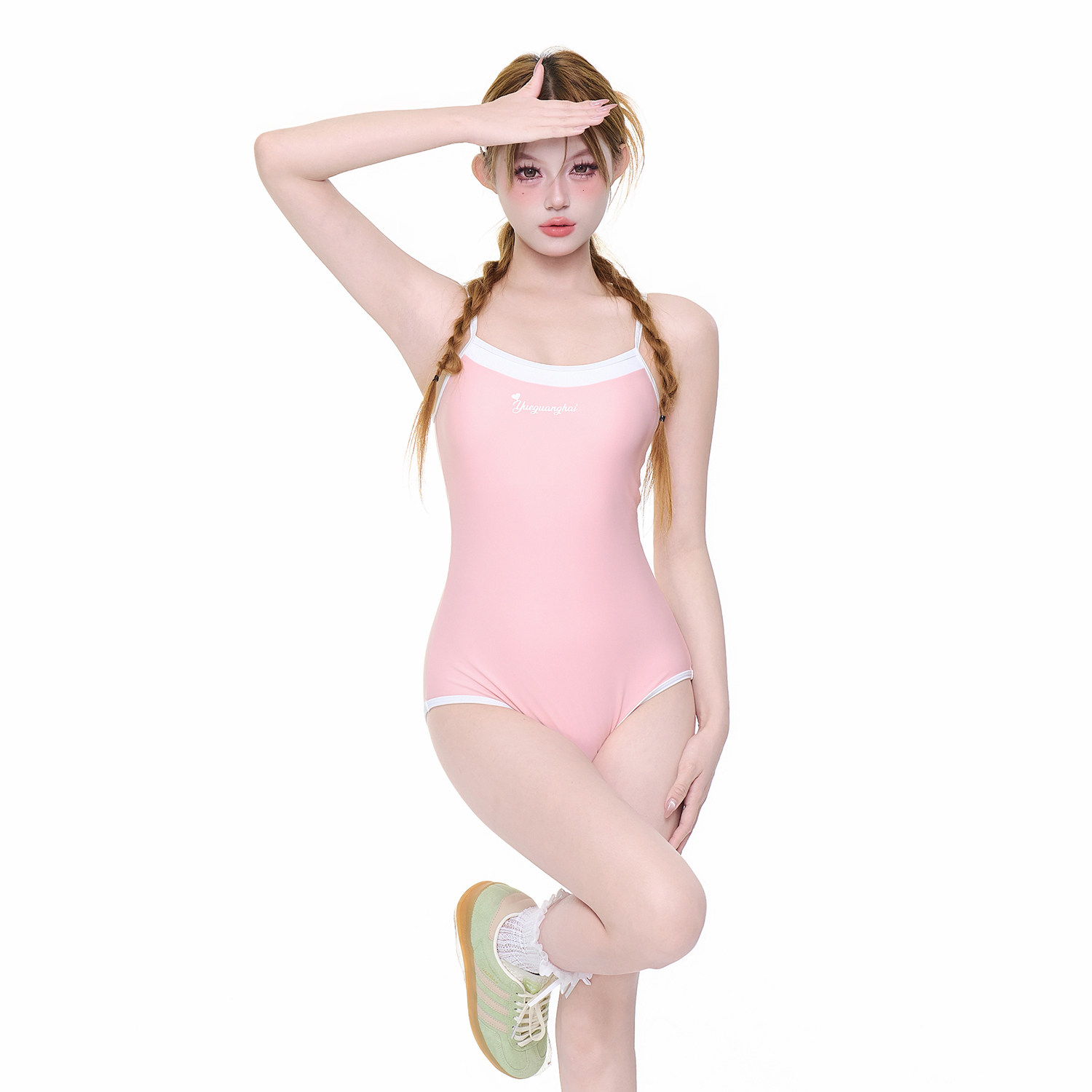 ONLY GIRL泳衣女新款连体显瘦保守平角裤粉色运动学生少女小胸