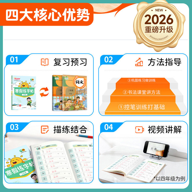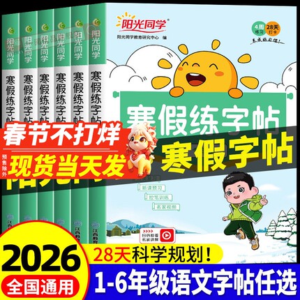 2026新版阳光同学寒假练字帖一二三四五六年级语文人教版小学寒假衔接训练作业上下册寒假阅读口算专项训练生字描红同步练习册