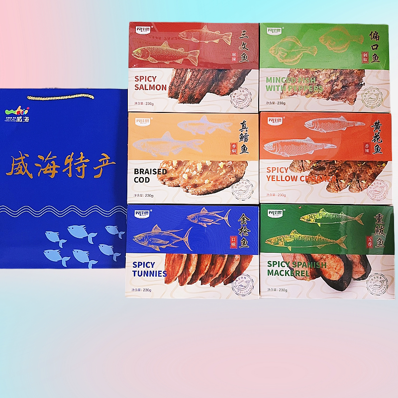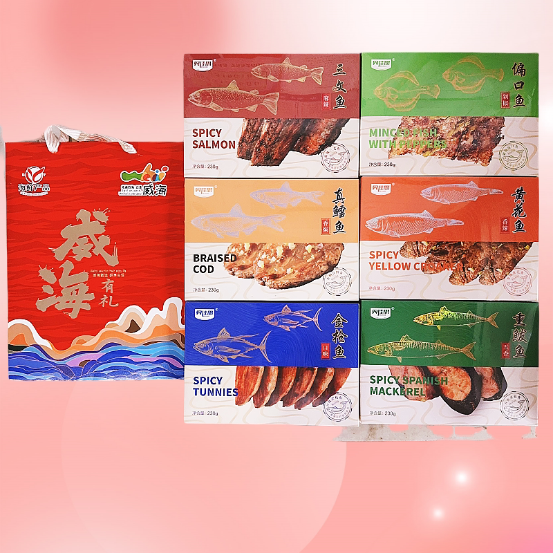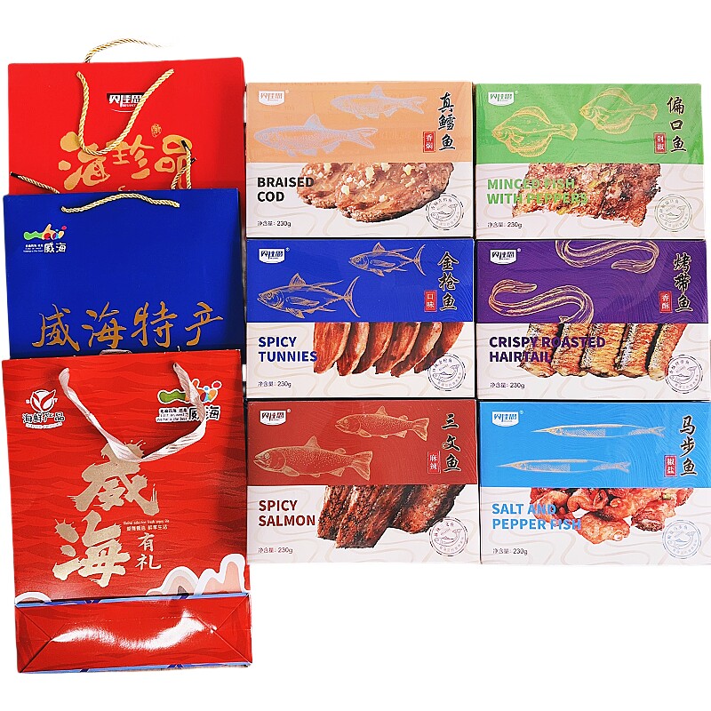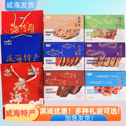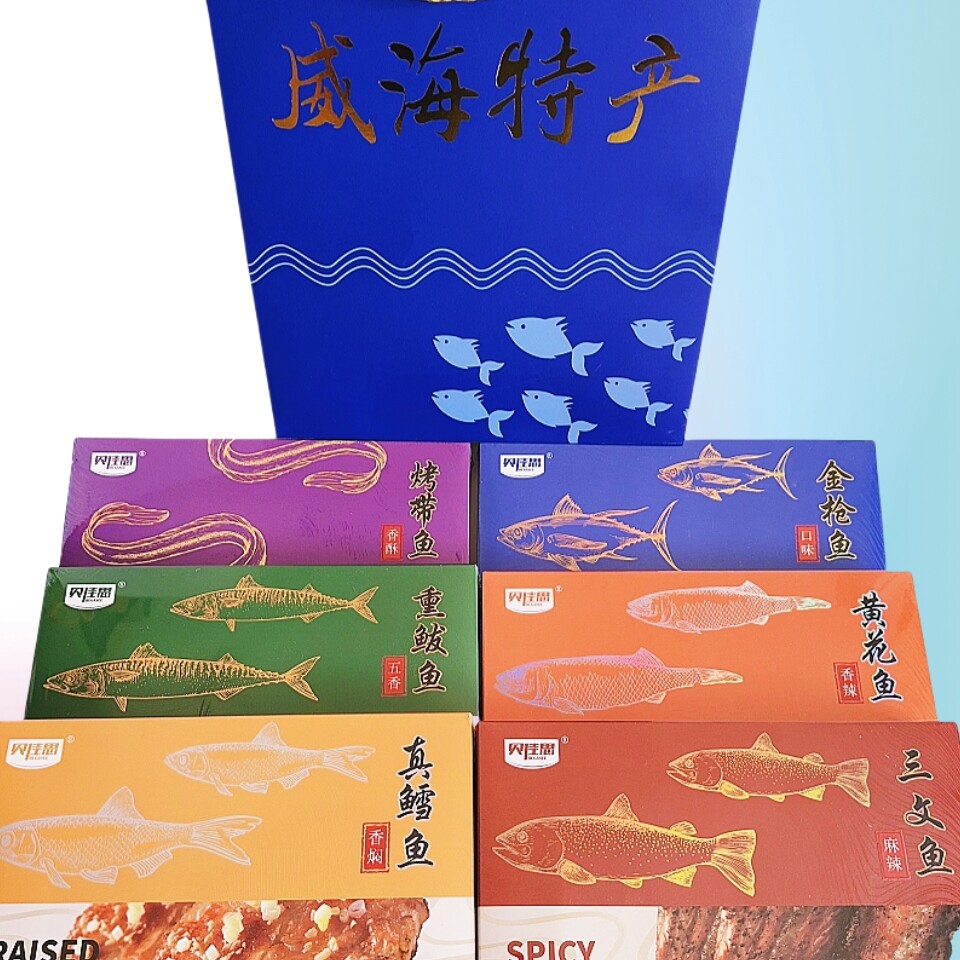 威海特产即食鱼6盒贝佳思零食大礼包礼袋海鲜金枪鱼黄花鱼旅游礼