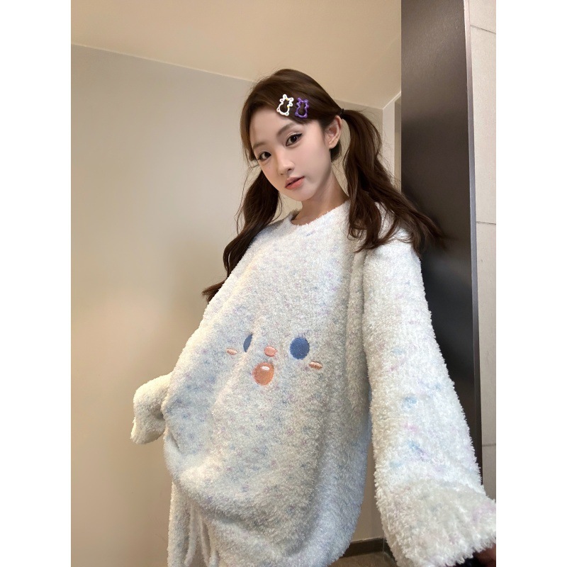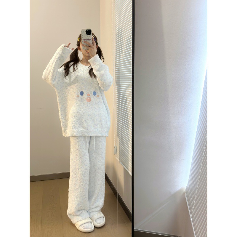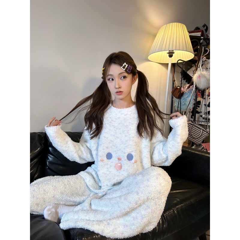 居小物【现货】韩版毛绒半边绒睡衣女冬季加厚保暖2023年新款