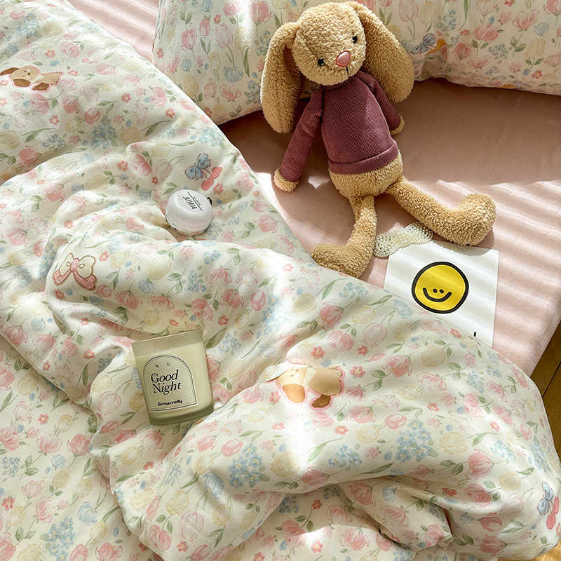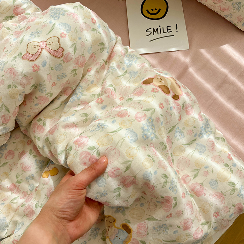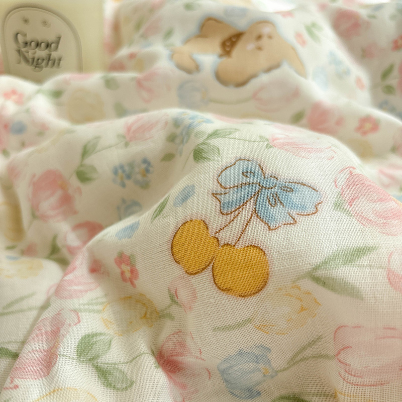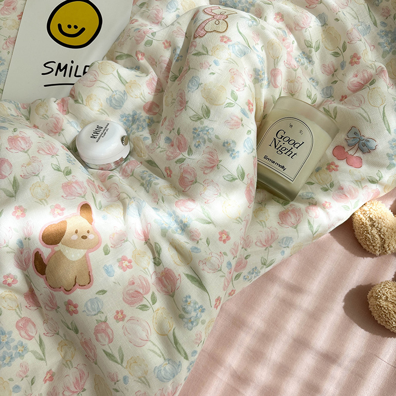 双层纱泡芙狗可爱小碎花纯棉床单单件全棉母婴级被套可配三四件套