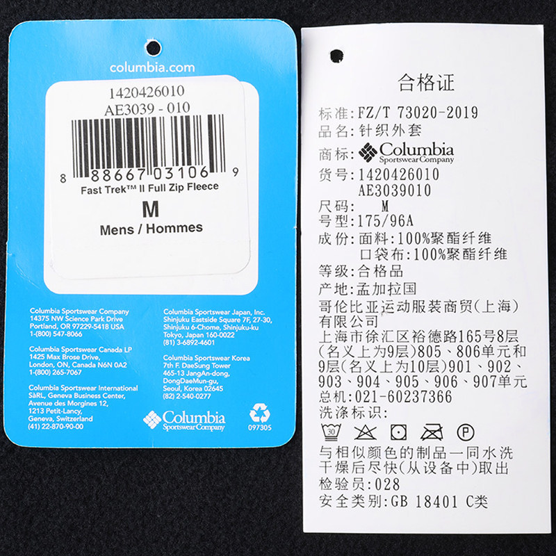 2025秋冬哥伦比亚户外男防风保暖休闲运动开衫抓绒衣外套AE3039