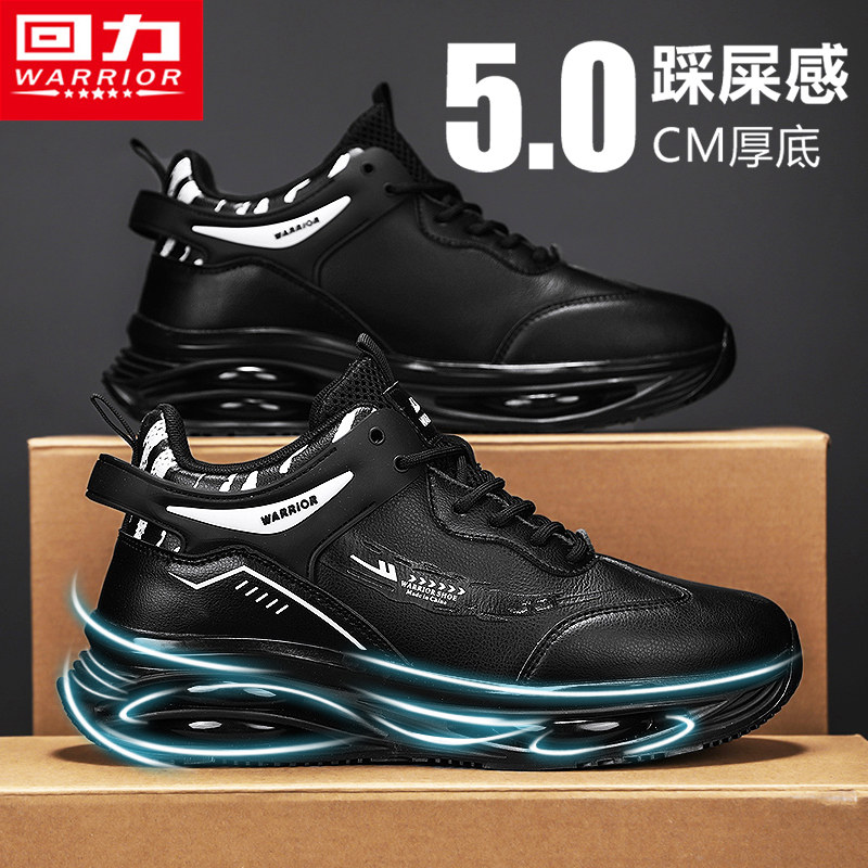 回力男鞋冬季潮流运动45码全掌气垫减震跑步休闲皮面增高老爹潮鞋
