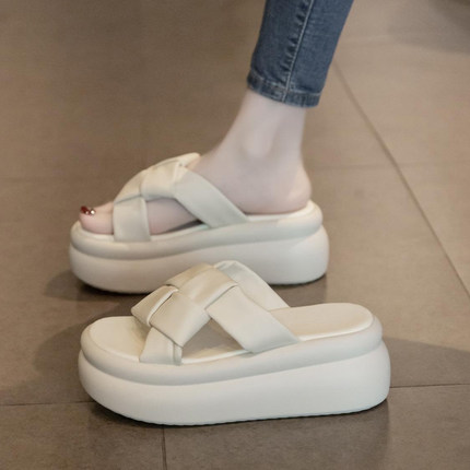 松糕厚底凉拖鞋女夏季外穿2025新款高级感小个子增高软底沙滩凉鞋