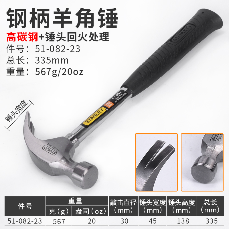 史丹利羊角锤铁锤子工具家用起钉锤榔头木工小锤子Y手锤工地木柄