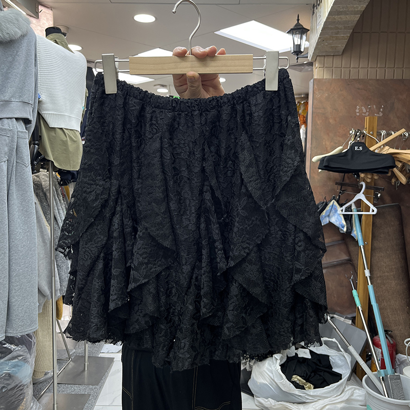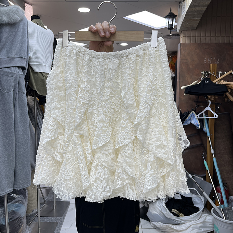 韩系不规则蕾丝荷叶边半身裙女2025秋冬新款高腰显瘦a字百搭短裙