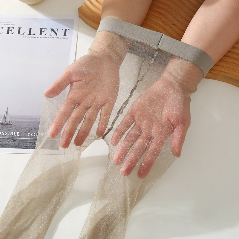 0D超薄银丝丝袜 一线裆珠光炫闪连裤袜夏季性感无痕脚尖透明袜女