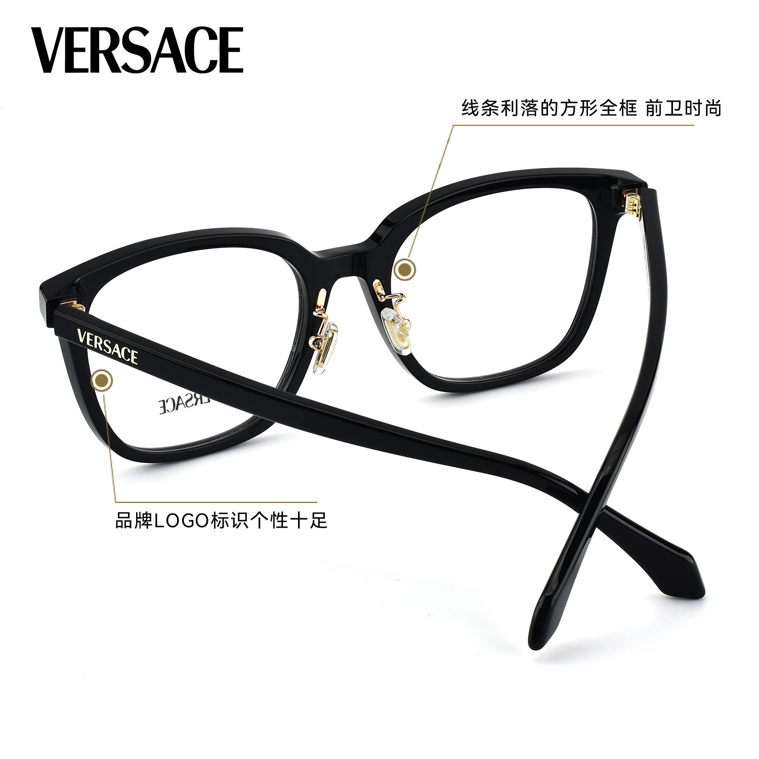 Versace范思哲眼镜框男经典黑色板材镜架素颜时尚小黑框女0VE3378