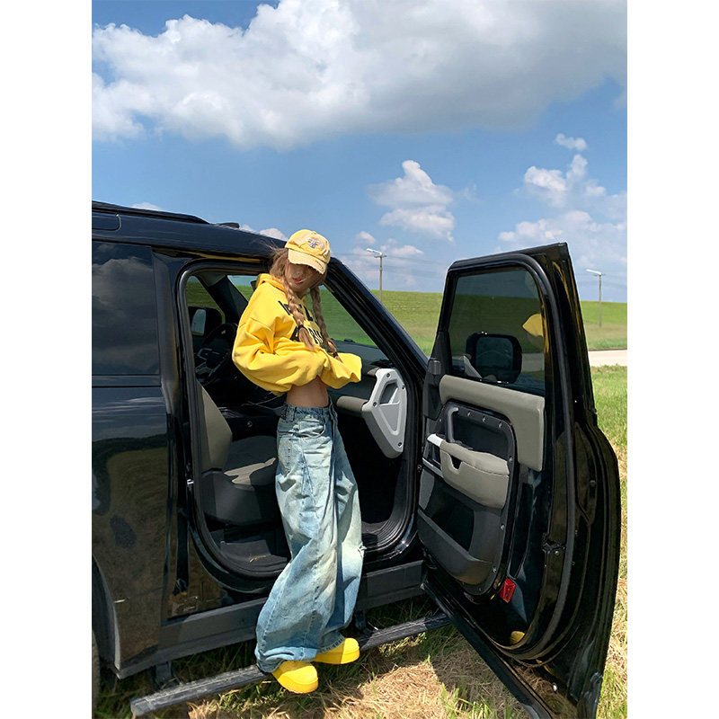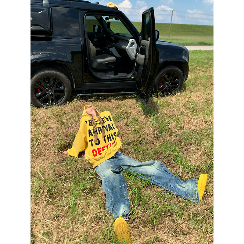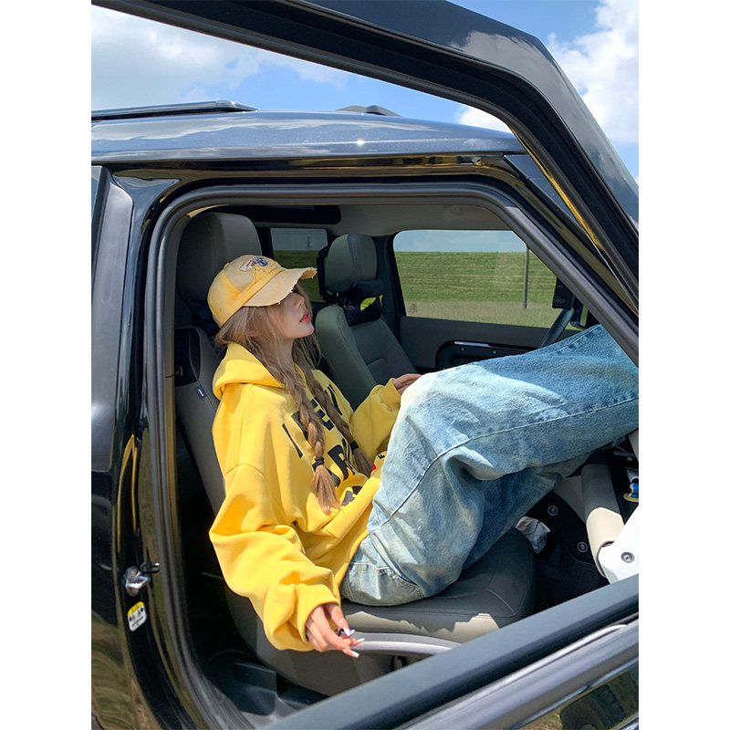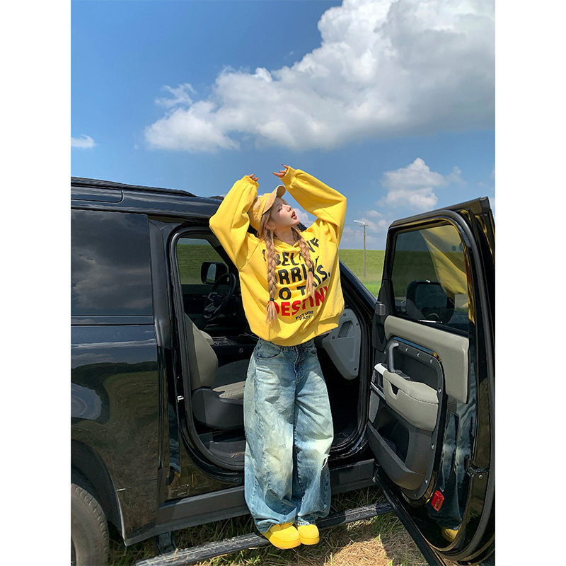NECOYEP 2025美式复古字母黄色连帽长袖卫衣秋冬男女宽松街头上衣