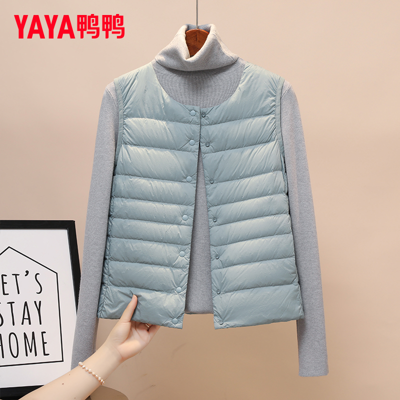 鸭鸭轻薄羽绒背心羽绒服马甲女