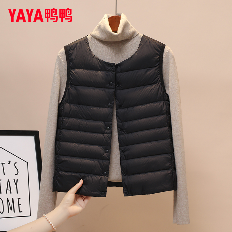 鸭鸭品牌羽绒服马甲女2025年秋冬新款轻薄羽绒背心女鸭绒薄款内胆