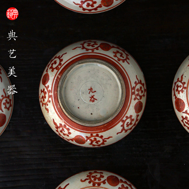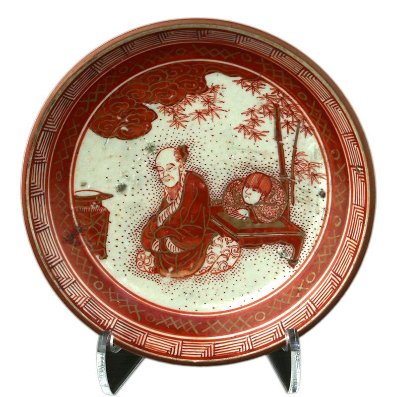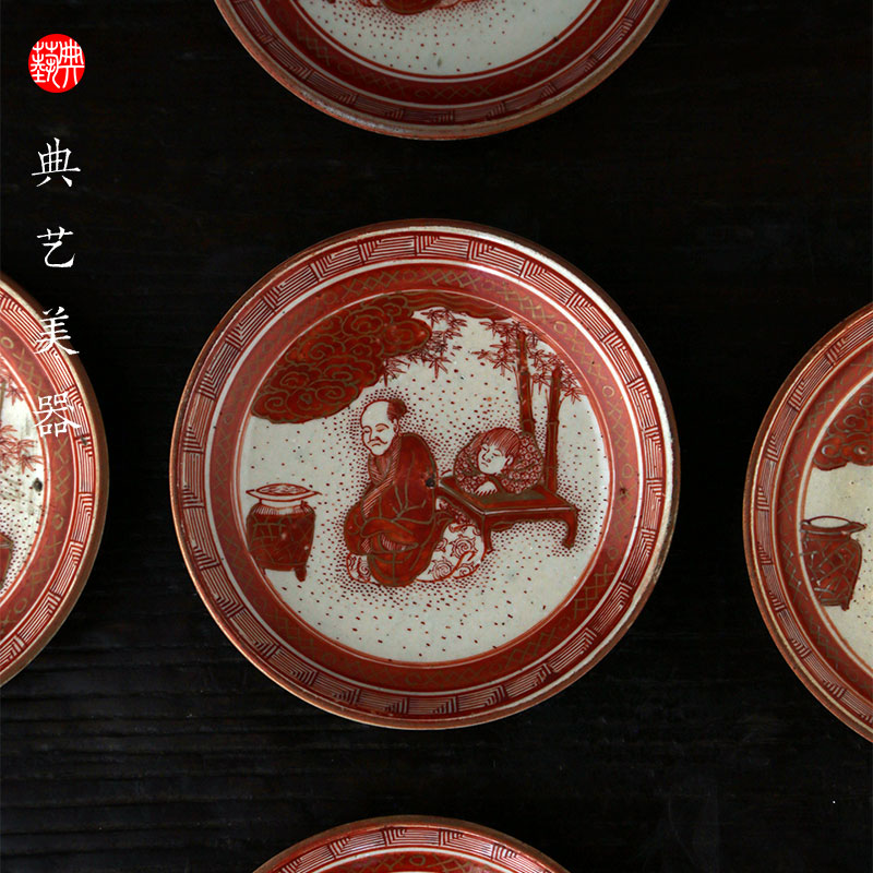 日本再兴九谷宫本屋窖人物童字赤绘酒盘点心坚果盘小壶承杯垫