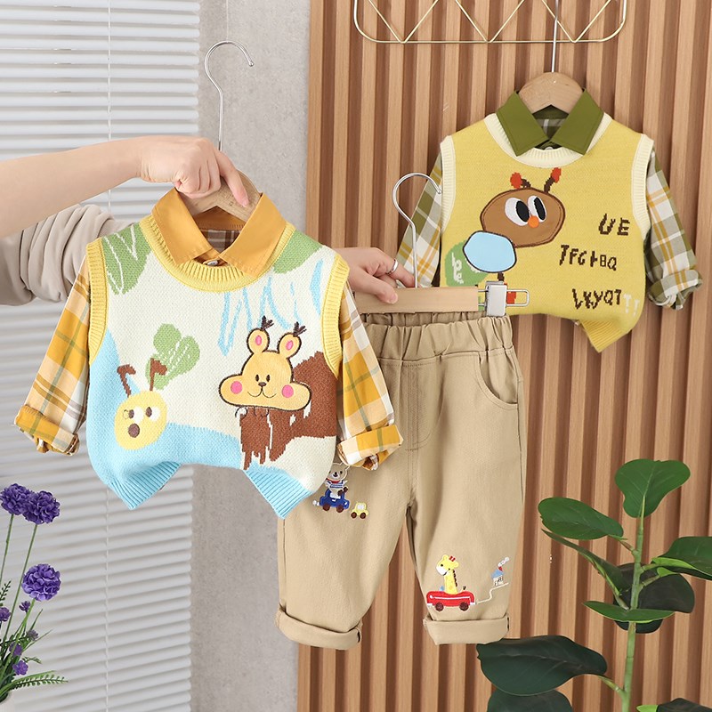 男童春秋款套装帅气儿童衬衫毛衣三件套春季婴儿童装一岁宝宝春装
