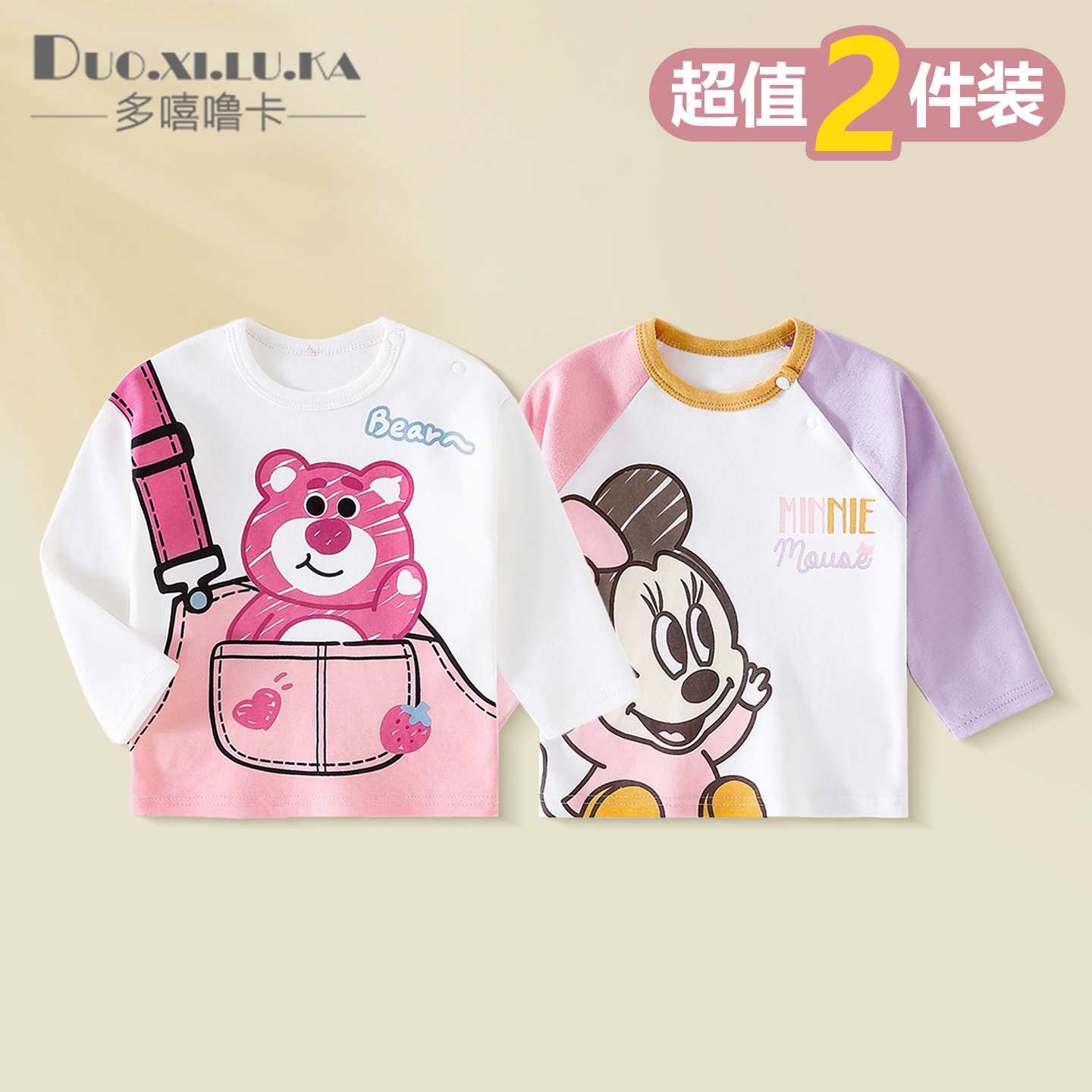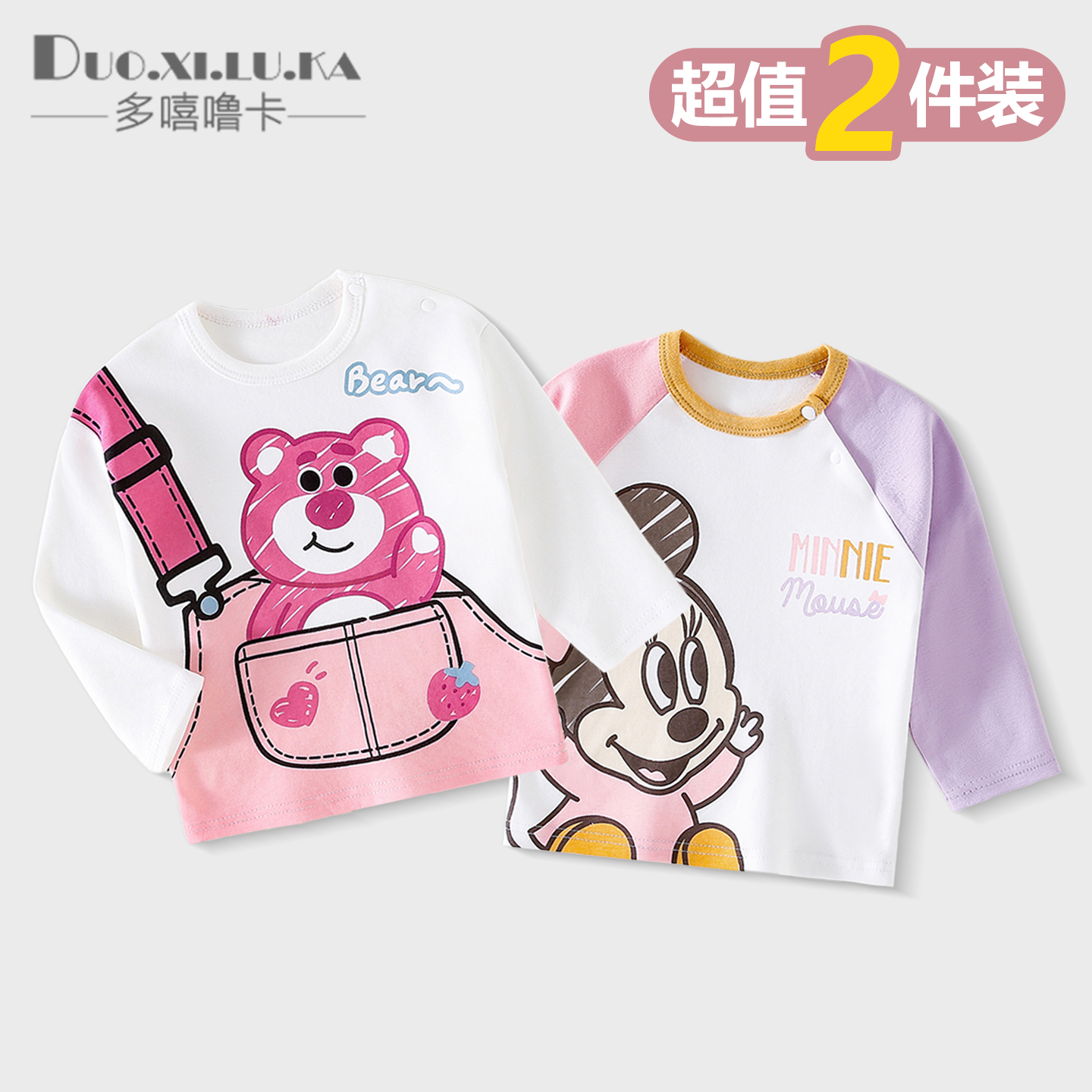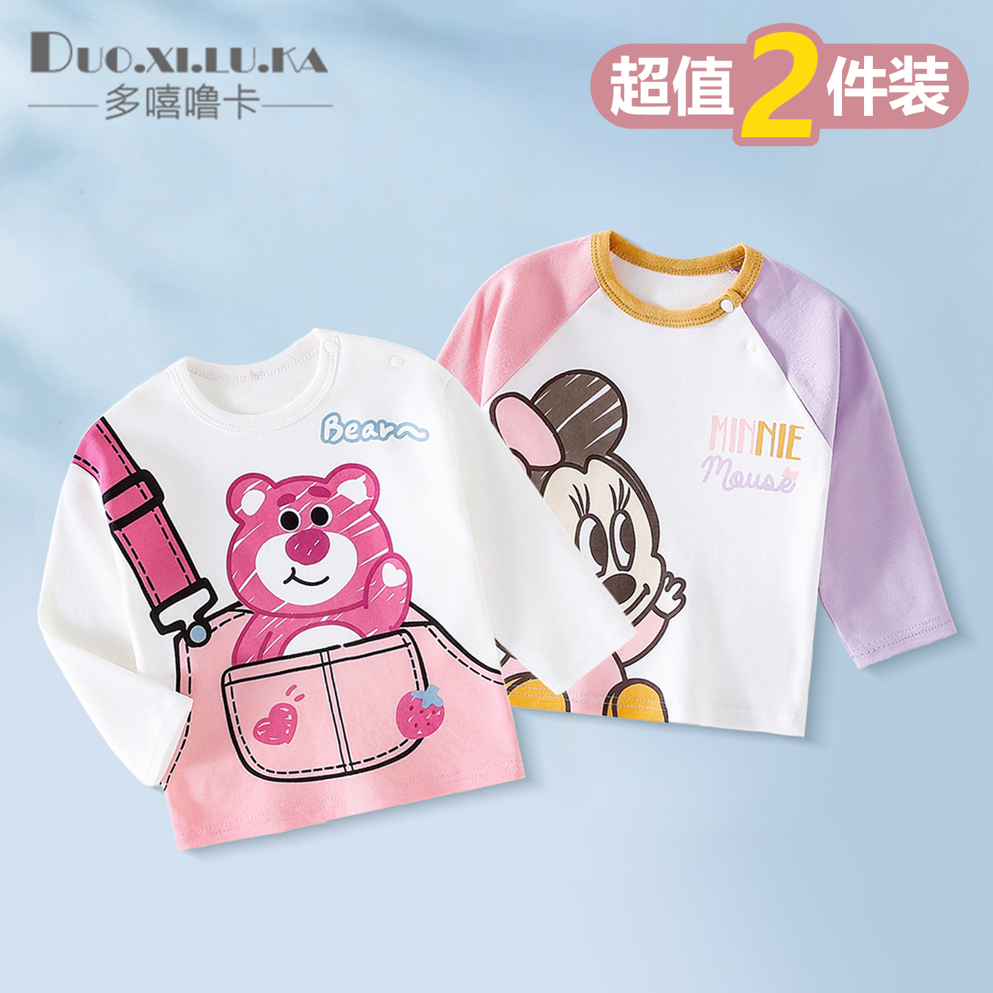 两件装宝宝纯棉A类长袖T恤儿童春秋季打底衫可爱上衣男女童衣服