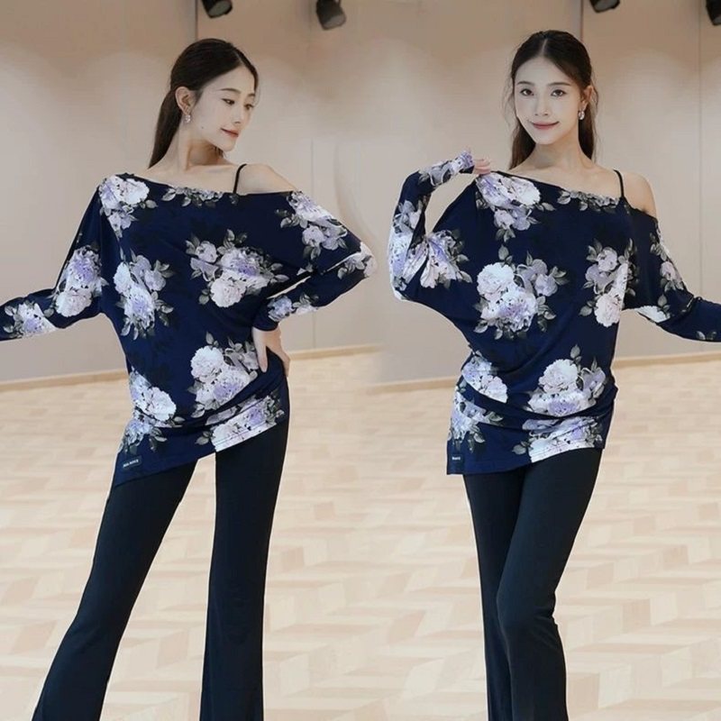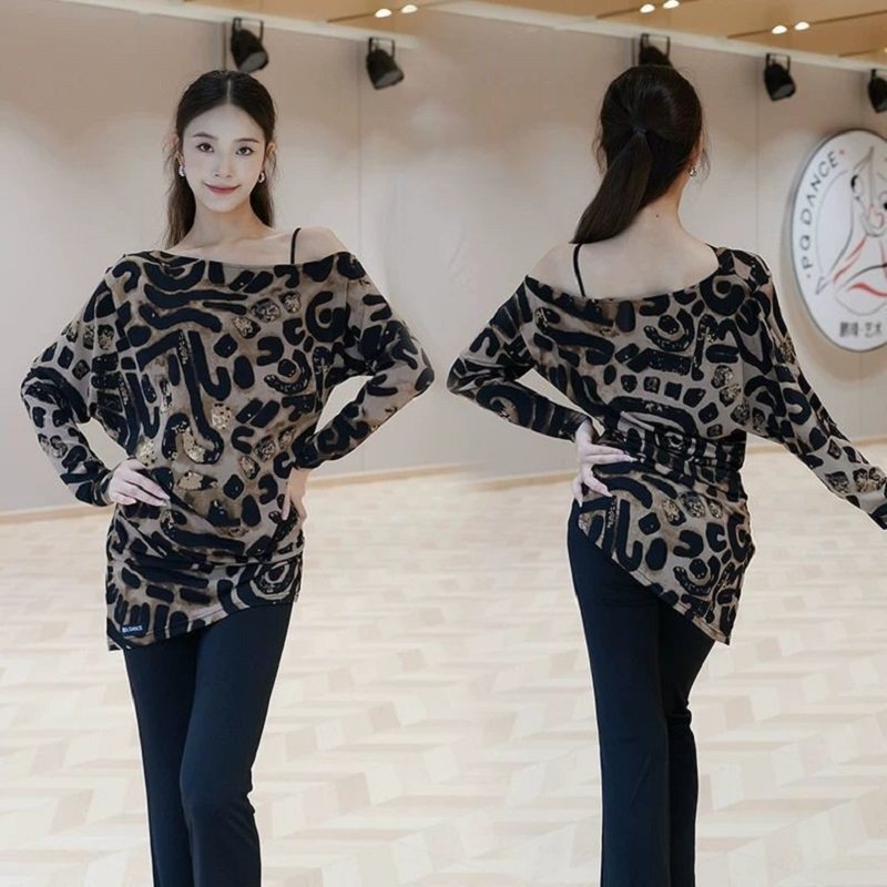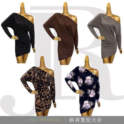 2026新款长袖斜肩宽松显瘦拉丁舞大衫显瘦洋气上衣国标***表演服