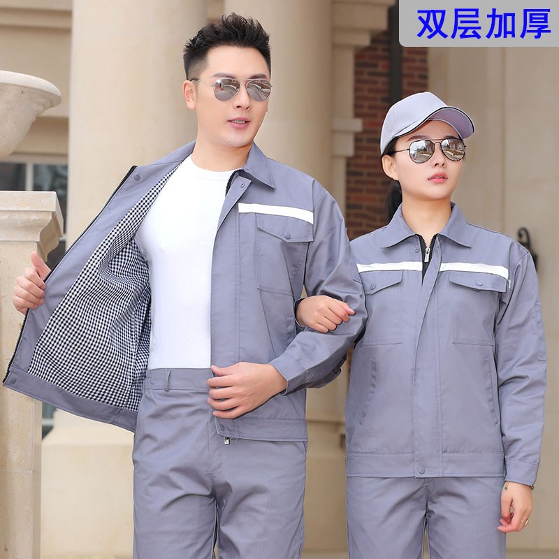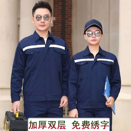 秋冬季双层工作服套装男加厚耐磨长袖劳保服工厂车间工人定制工装