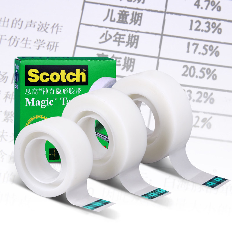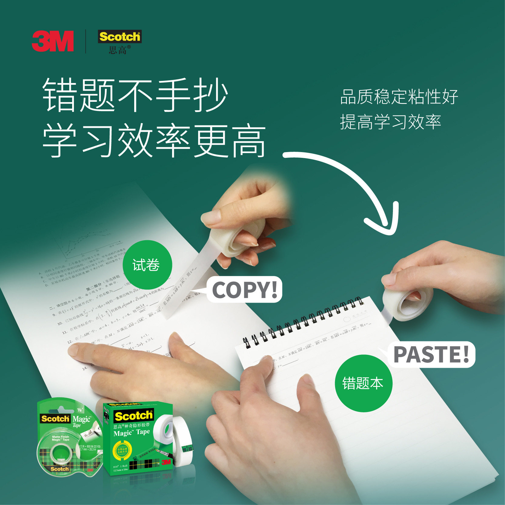 3M思高神奇隐形胶带手账手撕写字耐撕测试透明磨砂学生用学霸复制错题胶带粘字scotch改错纠错转印810免抄题