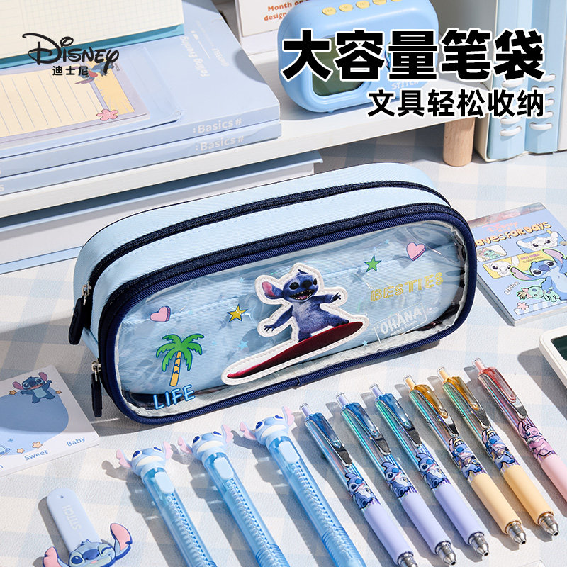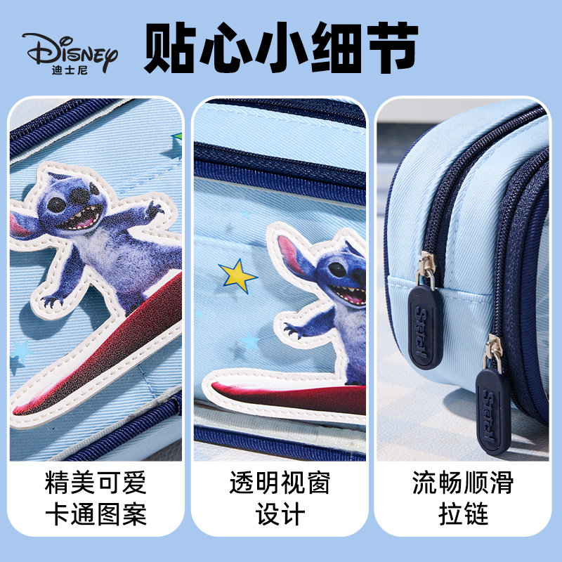 迪士尼小学生笔袋男女生2025新款大容量文具盒高颜值卡通儿童铅笔盒收纳袋初中生透明铅笔收纳袋男孩款一年级