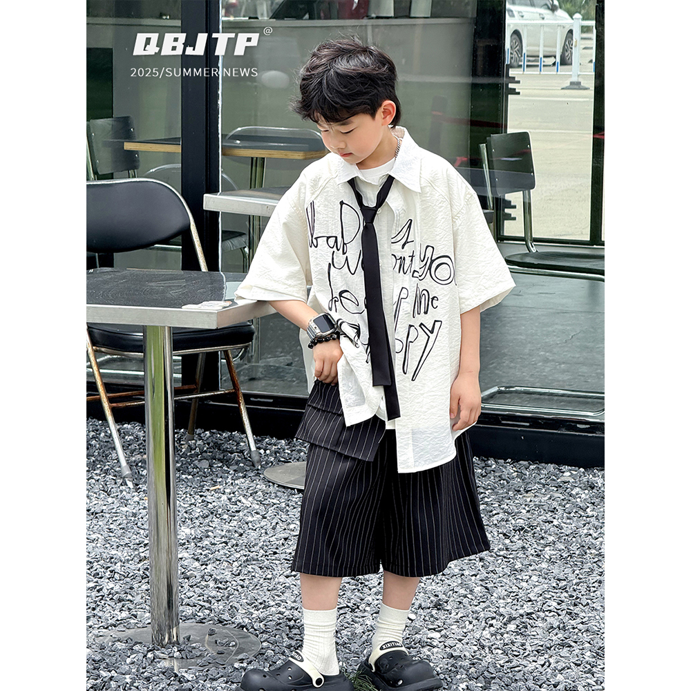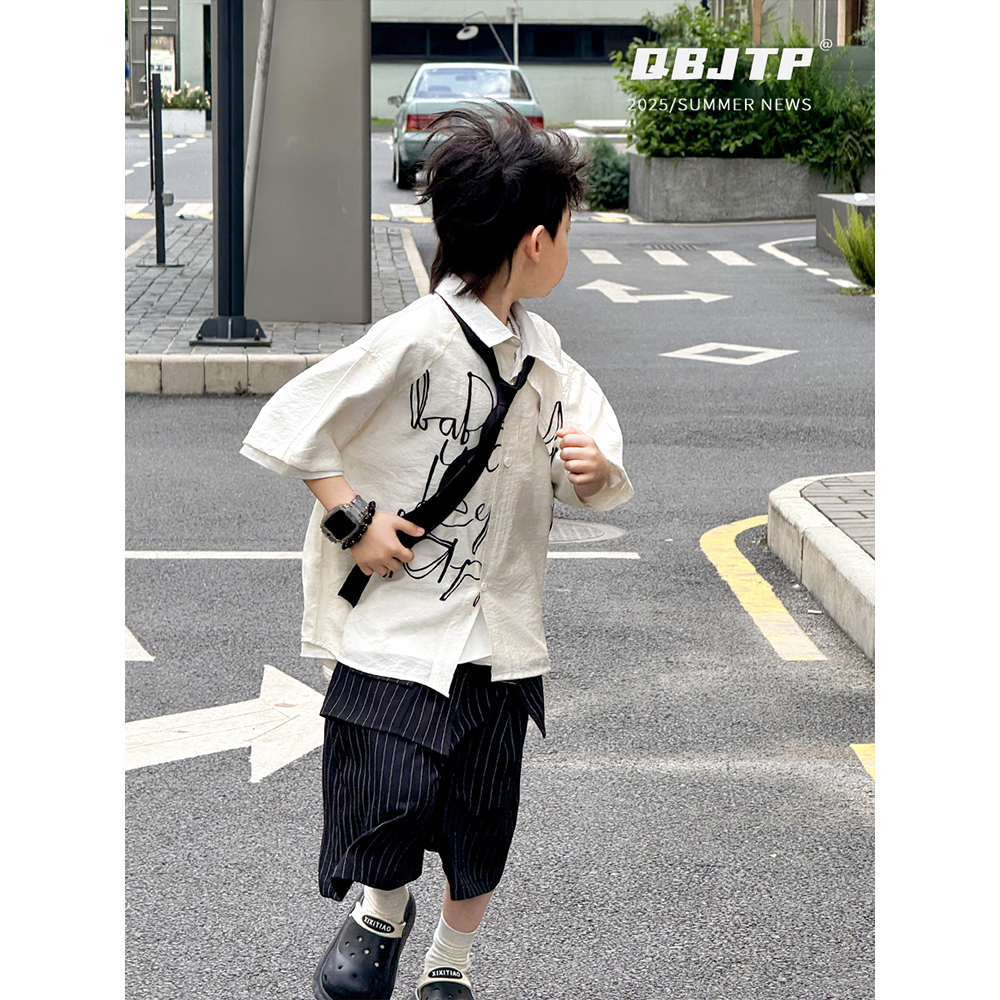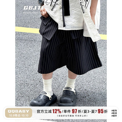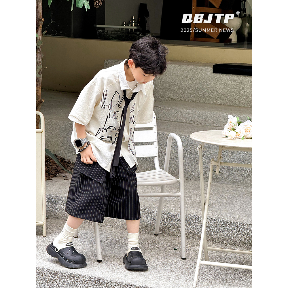 Q宝家童品25新款男童条纹西装五分裤夏季薄款儿童短裤宝宝西裤潮
