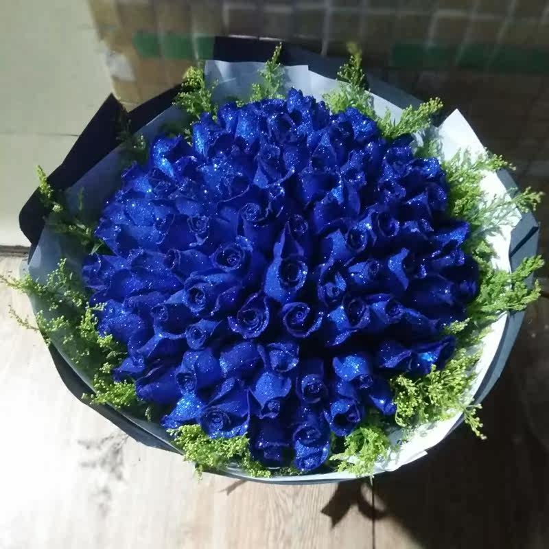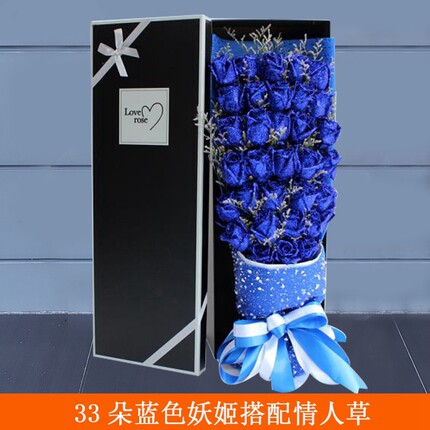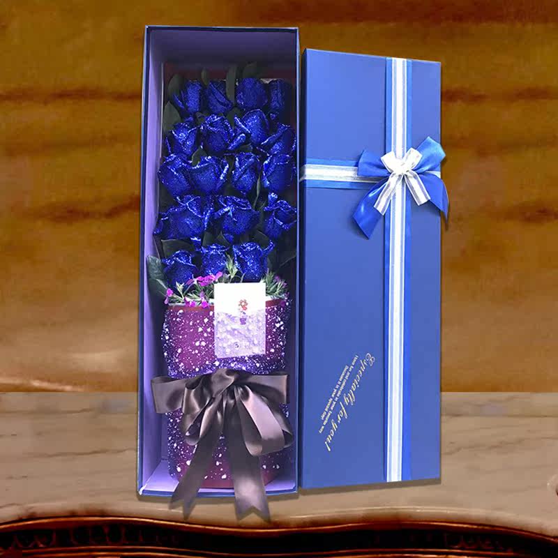 蓝色妖姬鲜花礼盒蓝玫瑰花生日深圳同城鲜花速递罗湖福田南山宝安