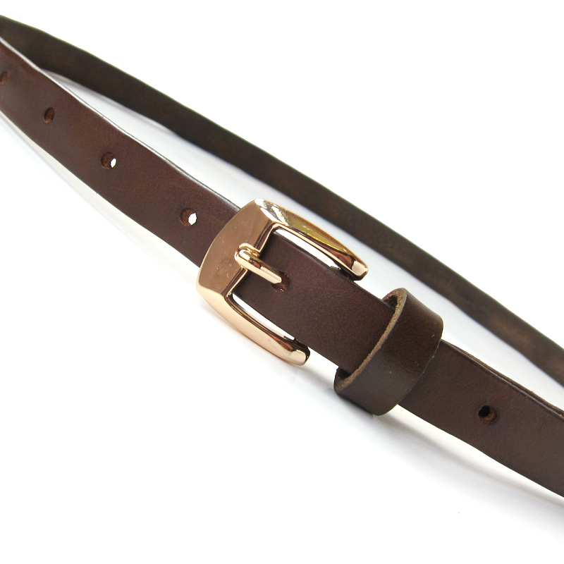 柔软头层牛皮简约百搭复古真皮细腰带女卡其色细皮带女配裙子裤带