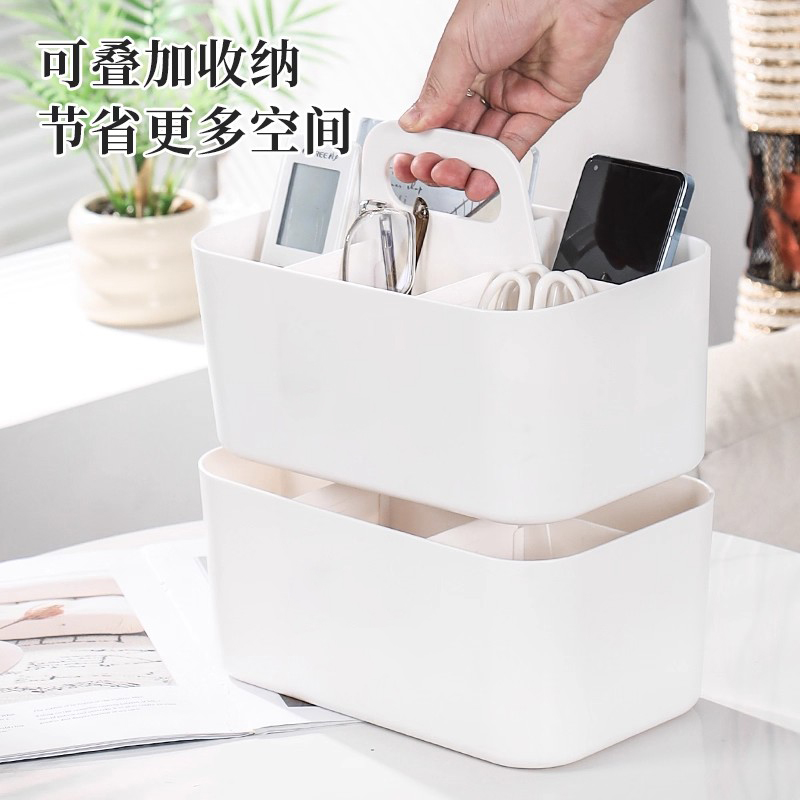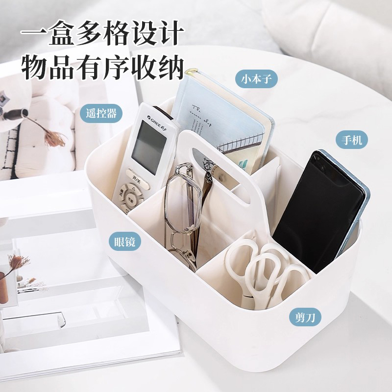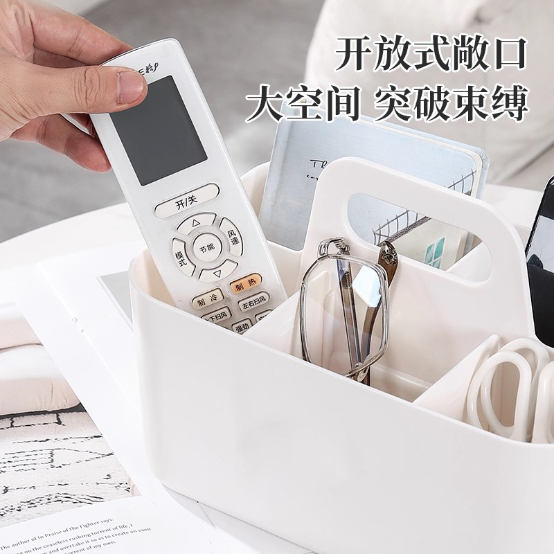 桌面遥控器收纳盒客厅茶几杂物分格储物盒手提式多功能整理盒家用