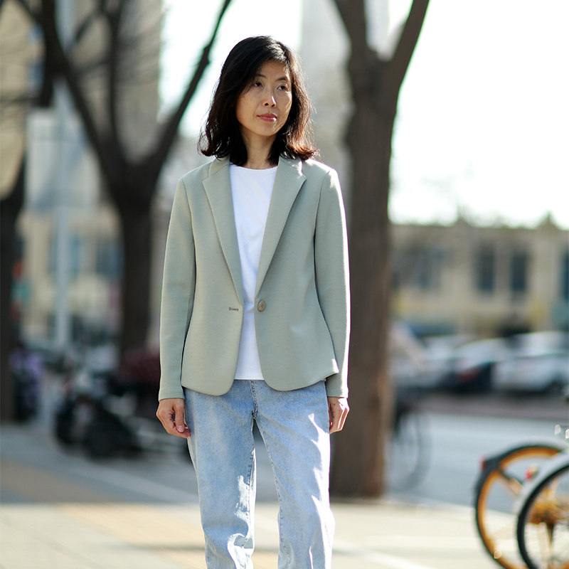 春秋新款香草绿单层无垫肩棉质短款修身通勤弹力针织西装外套女71