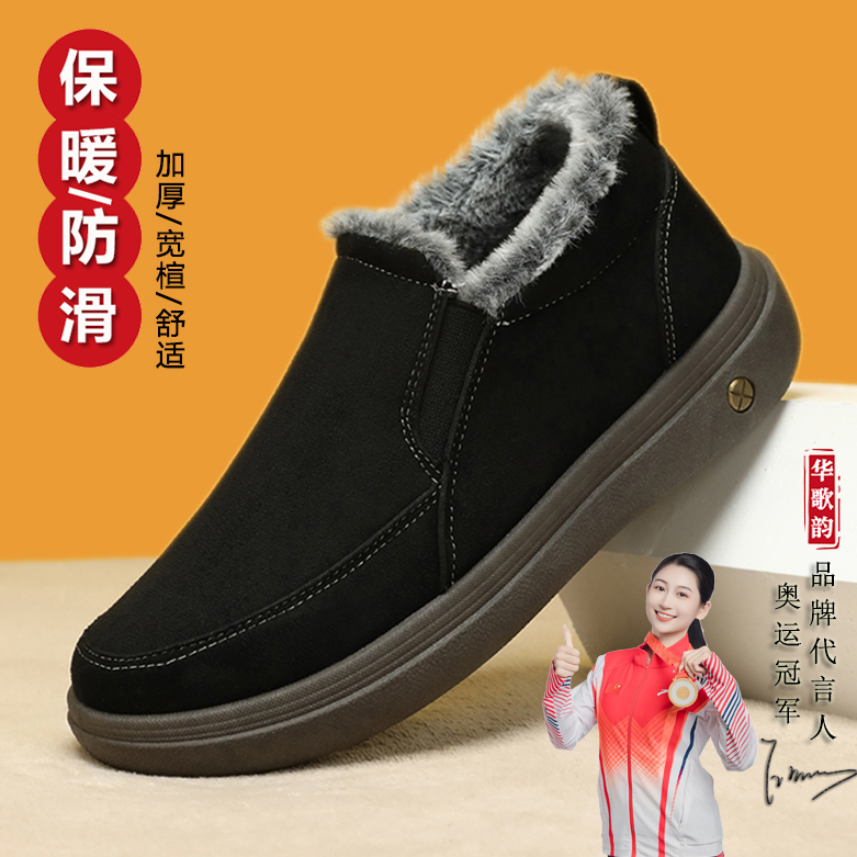 2025冬季绵羊毛一脚蹬老北京棉鞋加绒加厚休闲爸爸鞋中老年雪地靴