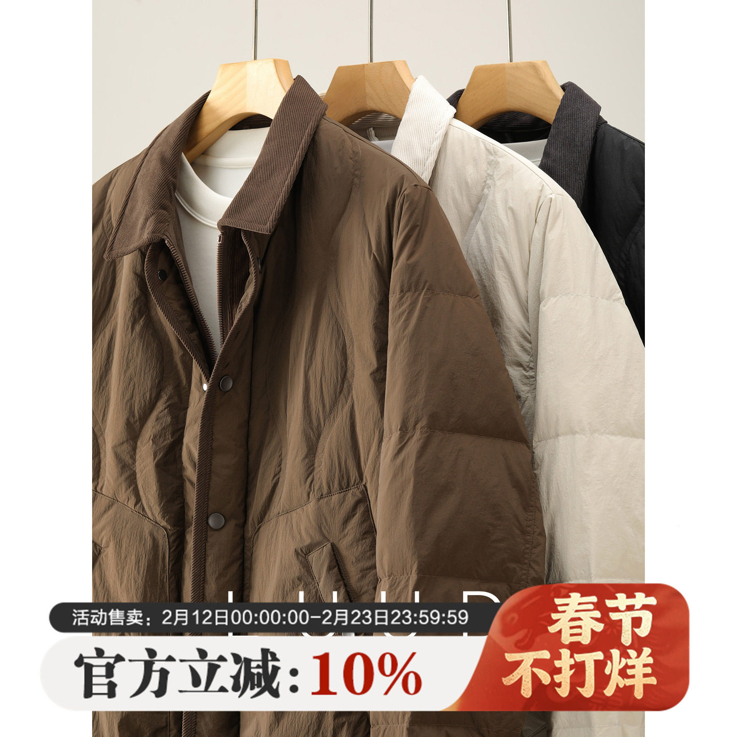 LUUD 轻薄90鸭绒菱形拼接灯芯绒翻领羽绒服男冬保暖防风纯色外套