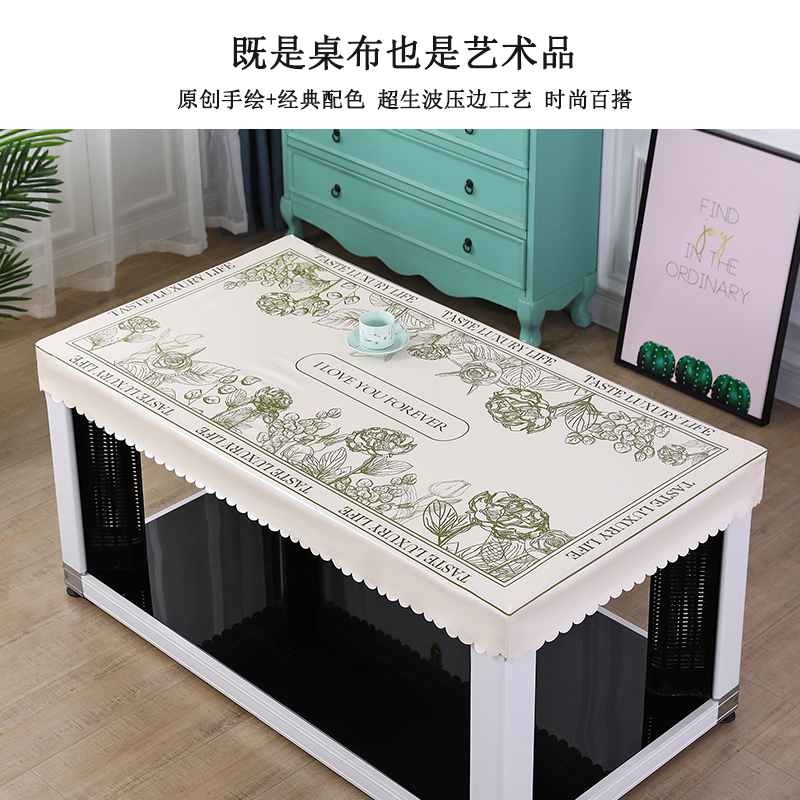 烤火桌子罩套防水防油皮罩长方形餐桌套布茶几电暖炉罩免洗pu夏季