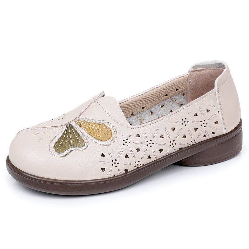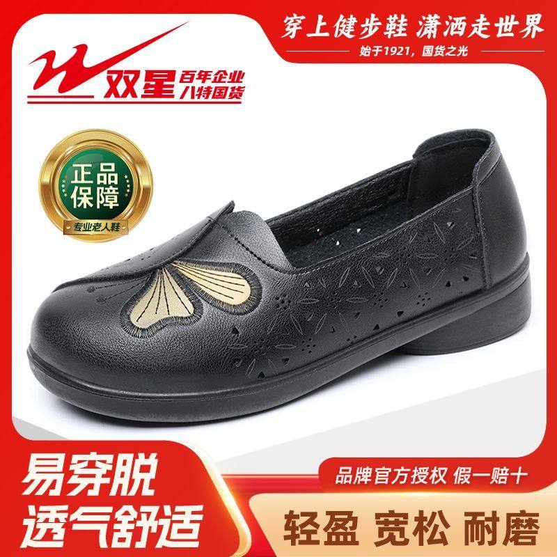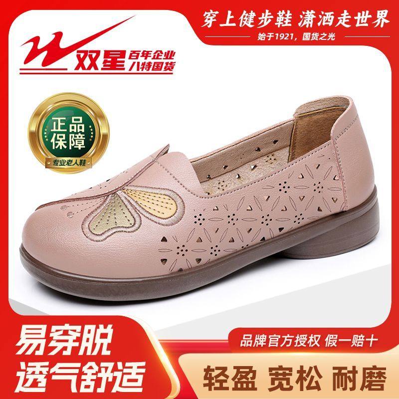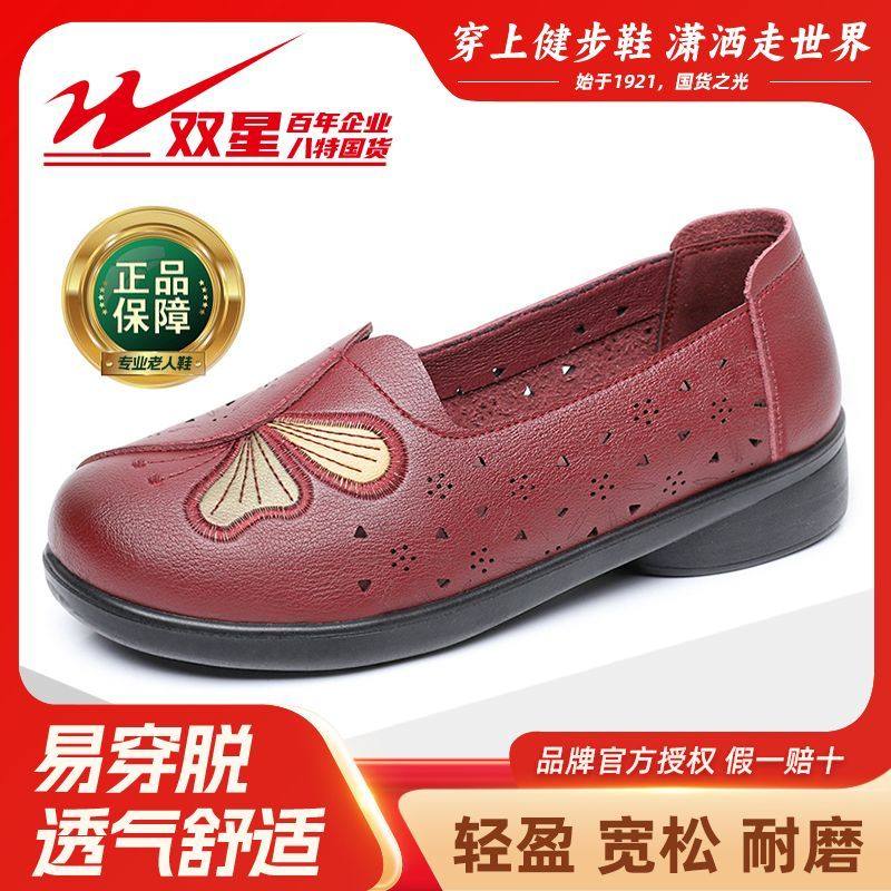 双星八特软底妈妈鞋女舒适中年单鞋皮鞋中老年夏季凉鞋老人洞洞鞋