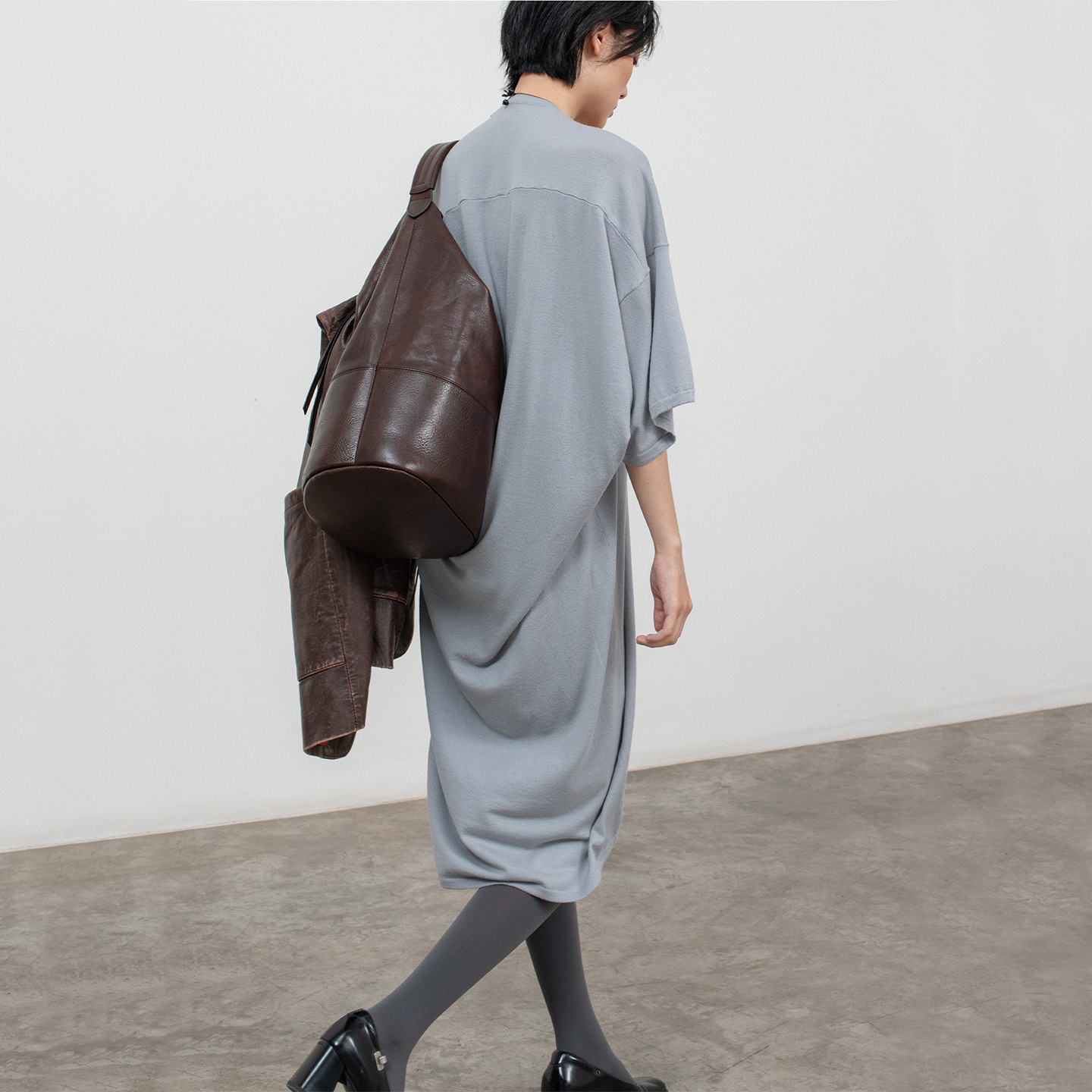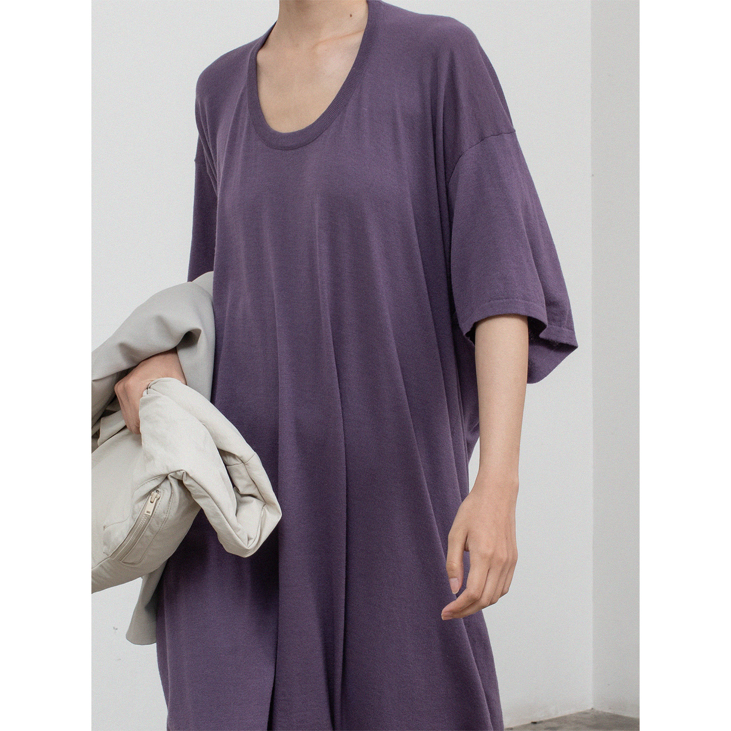 322WORKHOUSE羊毛针织短袖连衣裙女2025新款秋季宽松长款裙子B766