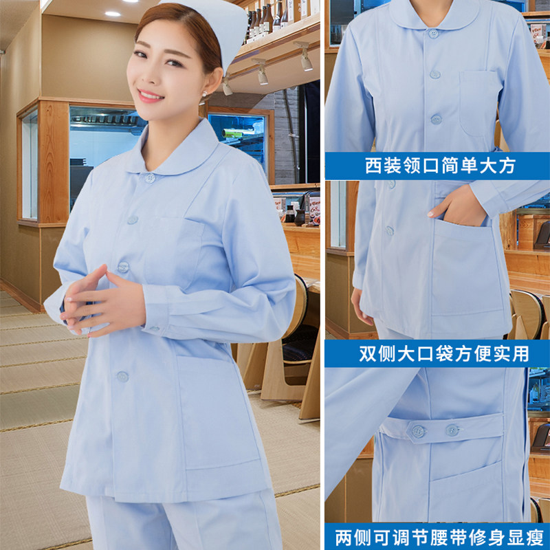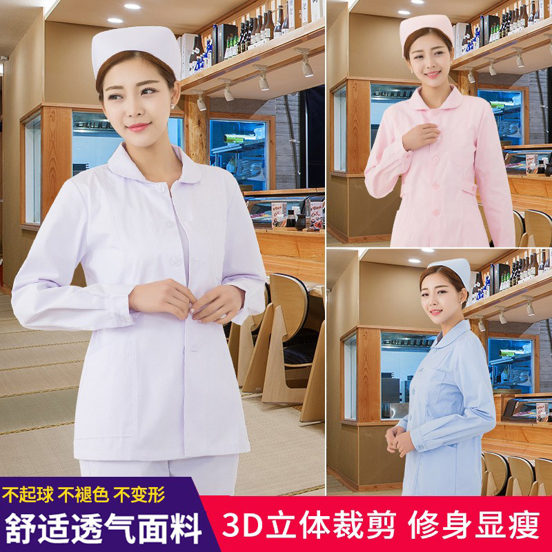 尖狮护士服长袖冬装女白大褂修身学生美容院药店工作服短款外套装