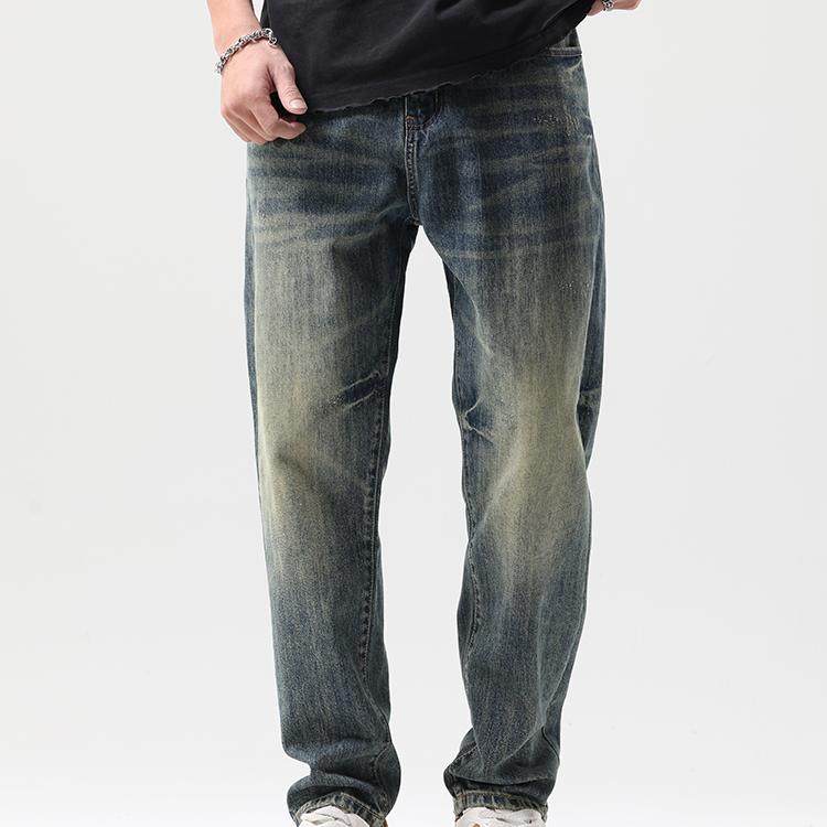 刺绣牛仔裤男潮牌纯棉宽松直筒锥形水洗复古春秋大码男士潮流裤子